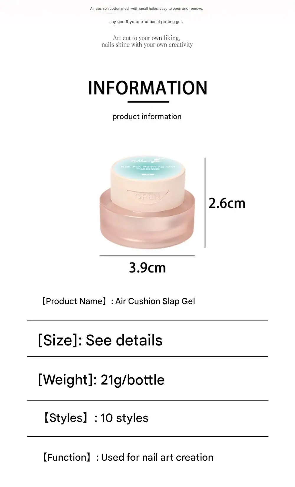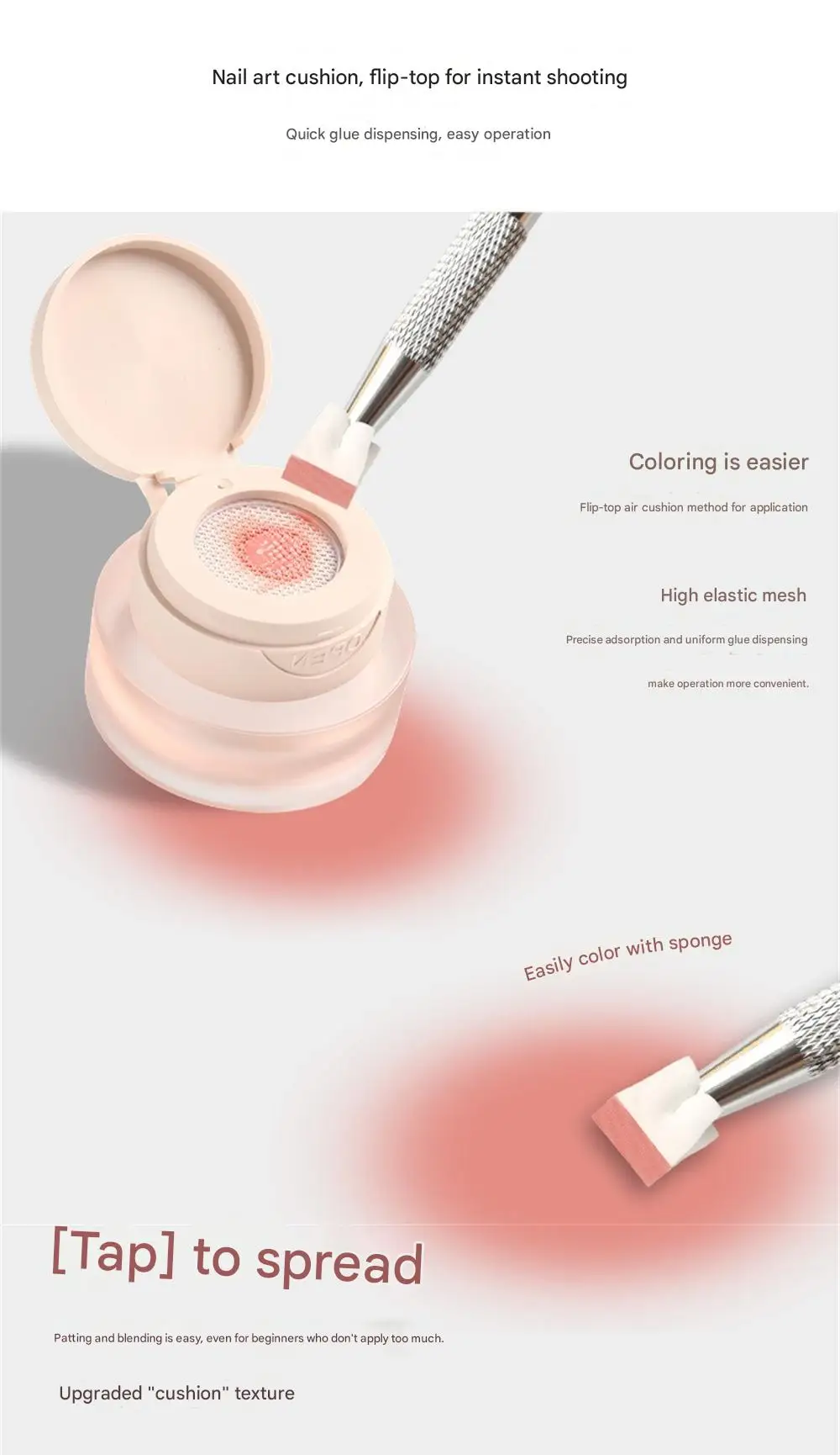 Revolutionize your nail art with our cushion patting gel – the first solid-form patting gel with built-in cushion technology. This innovative product eliminates the need for traditional liquid patting gels and messy applications. Simply press and pat with the built-in cushion to create perfect gradient, blooming, and ombre effects with professional results every time.