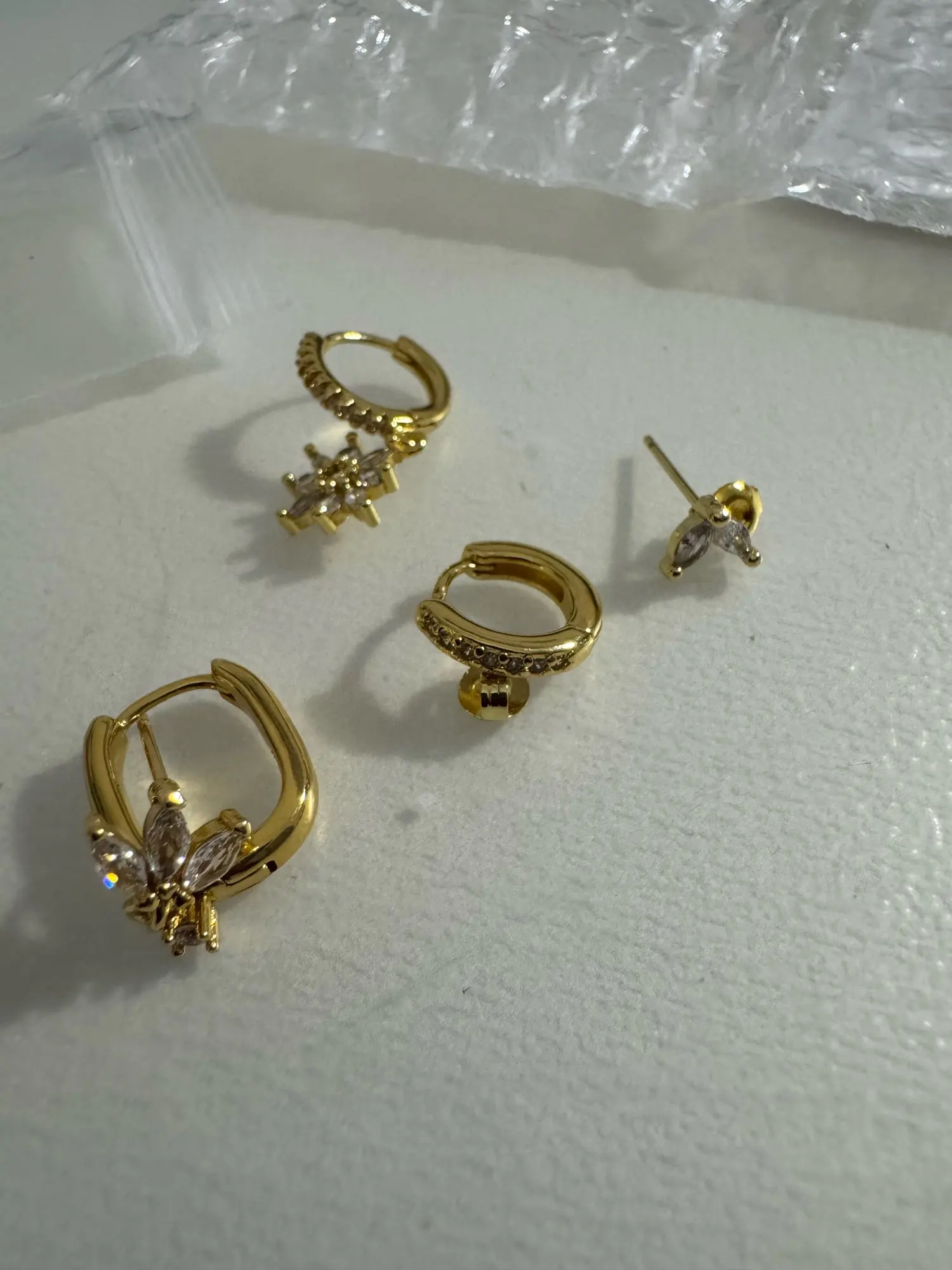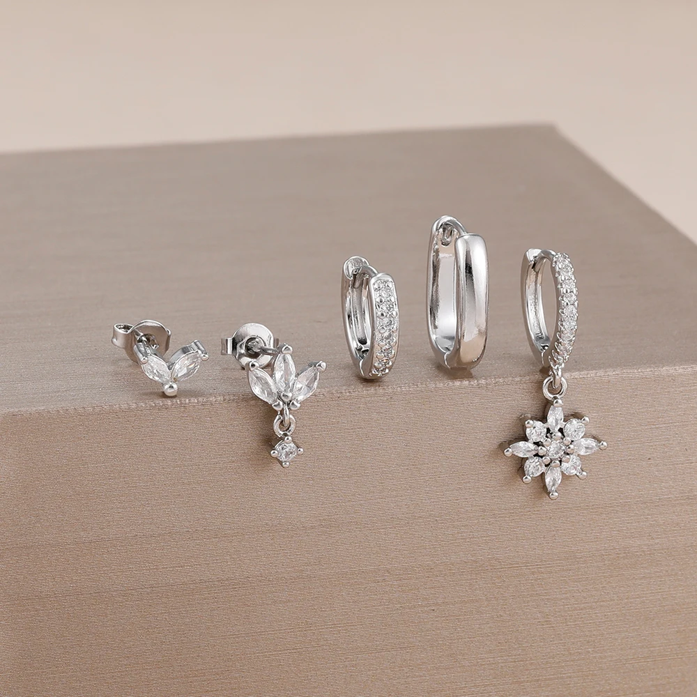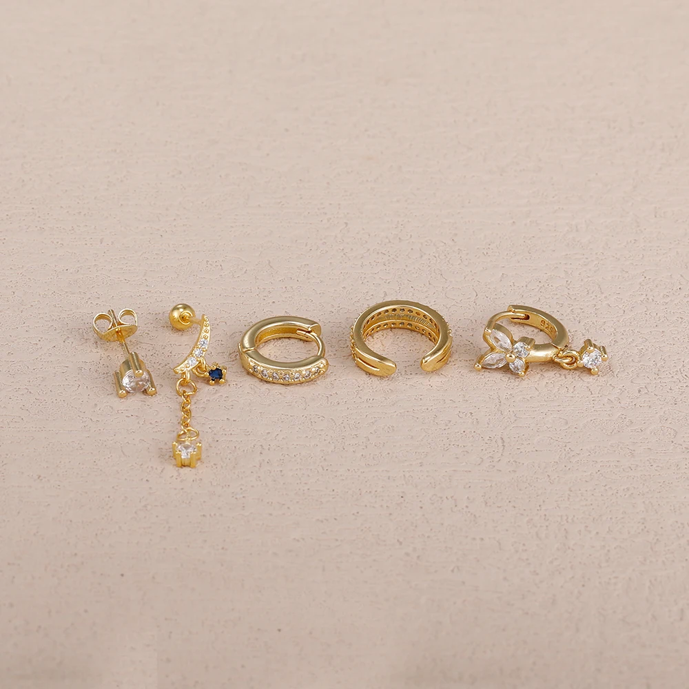 5PCS Stainless Steel Geometry Huggie Hoop Earrings Set For Women Daily Wear Gold Color Zircon Earring Piercing Jewelry Gift