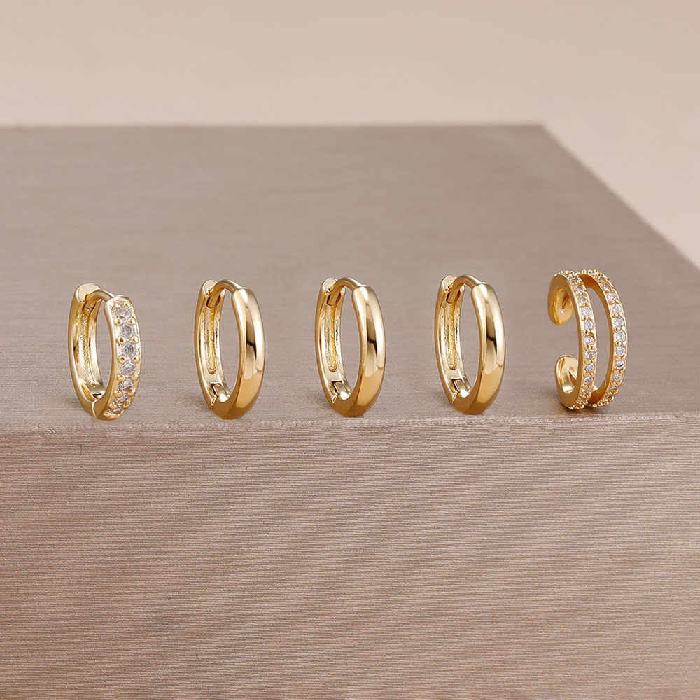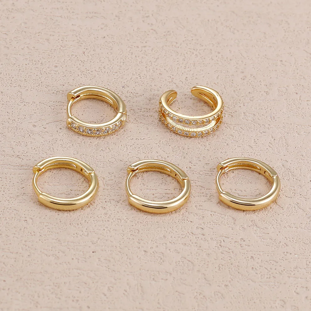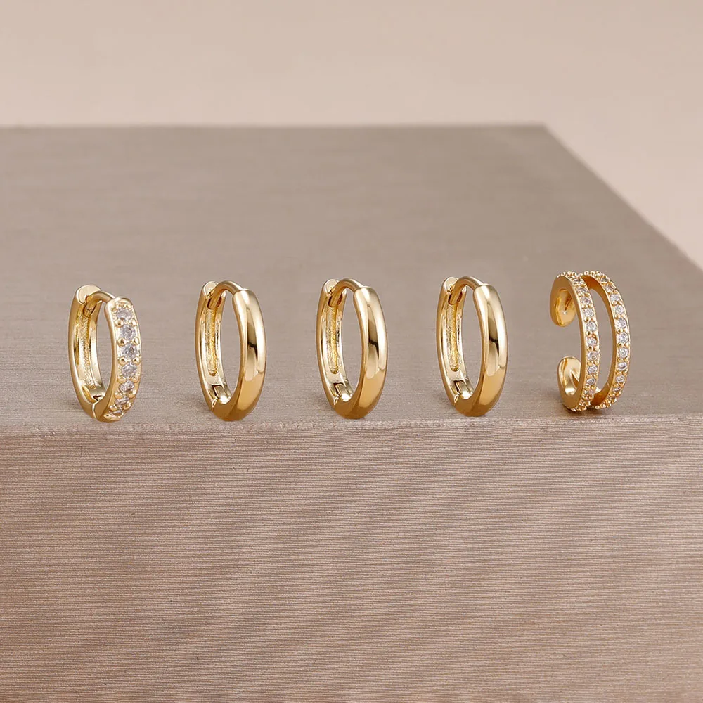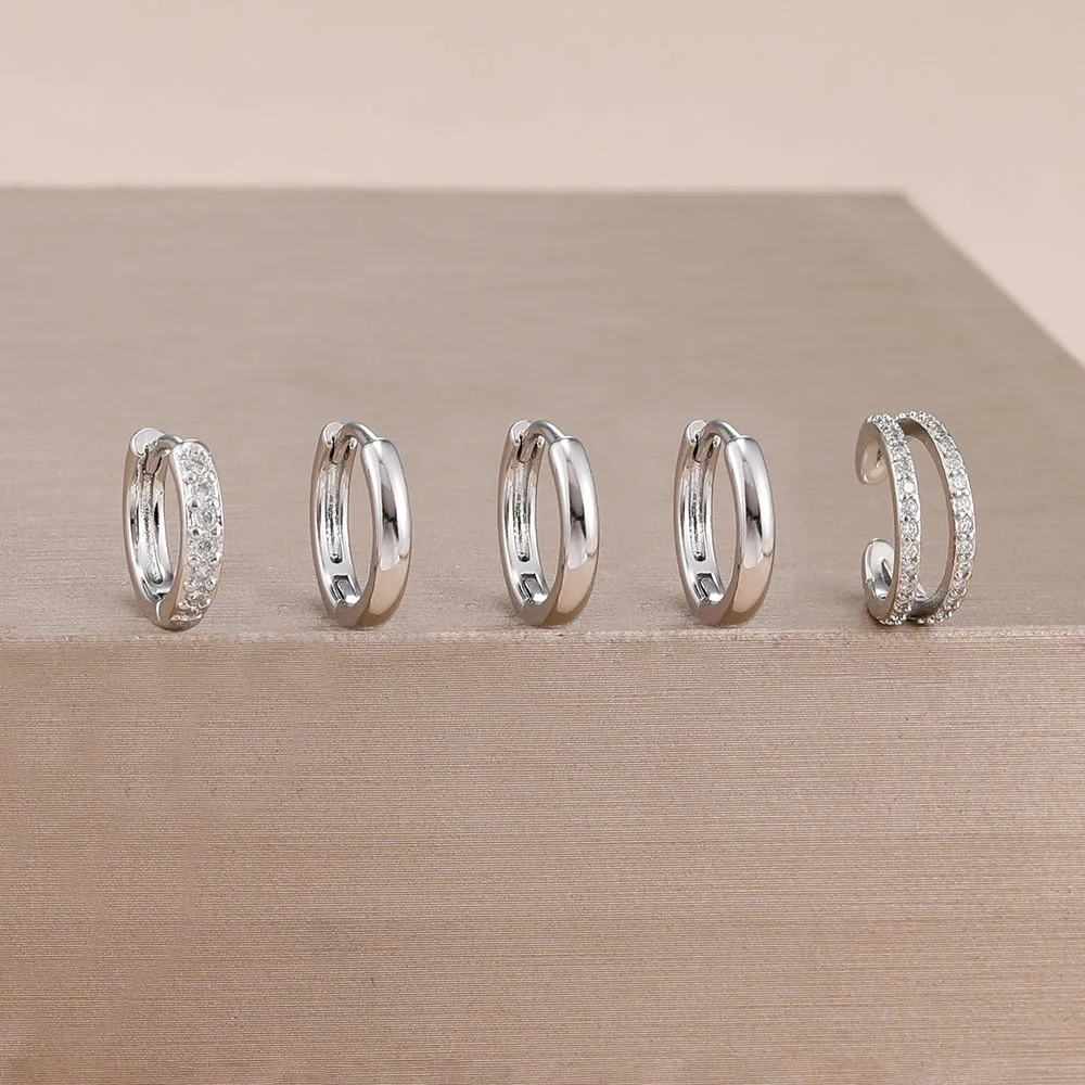 5Pcs Stainless Steel Huggie Round Circle Hoop Earrings Set for Women Crystal Zirconia Cartilage Ear Clip Earrings Jewelry