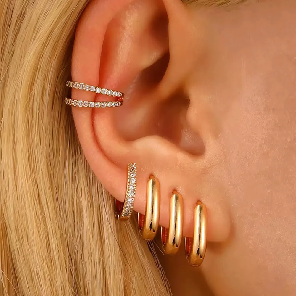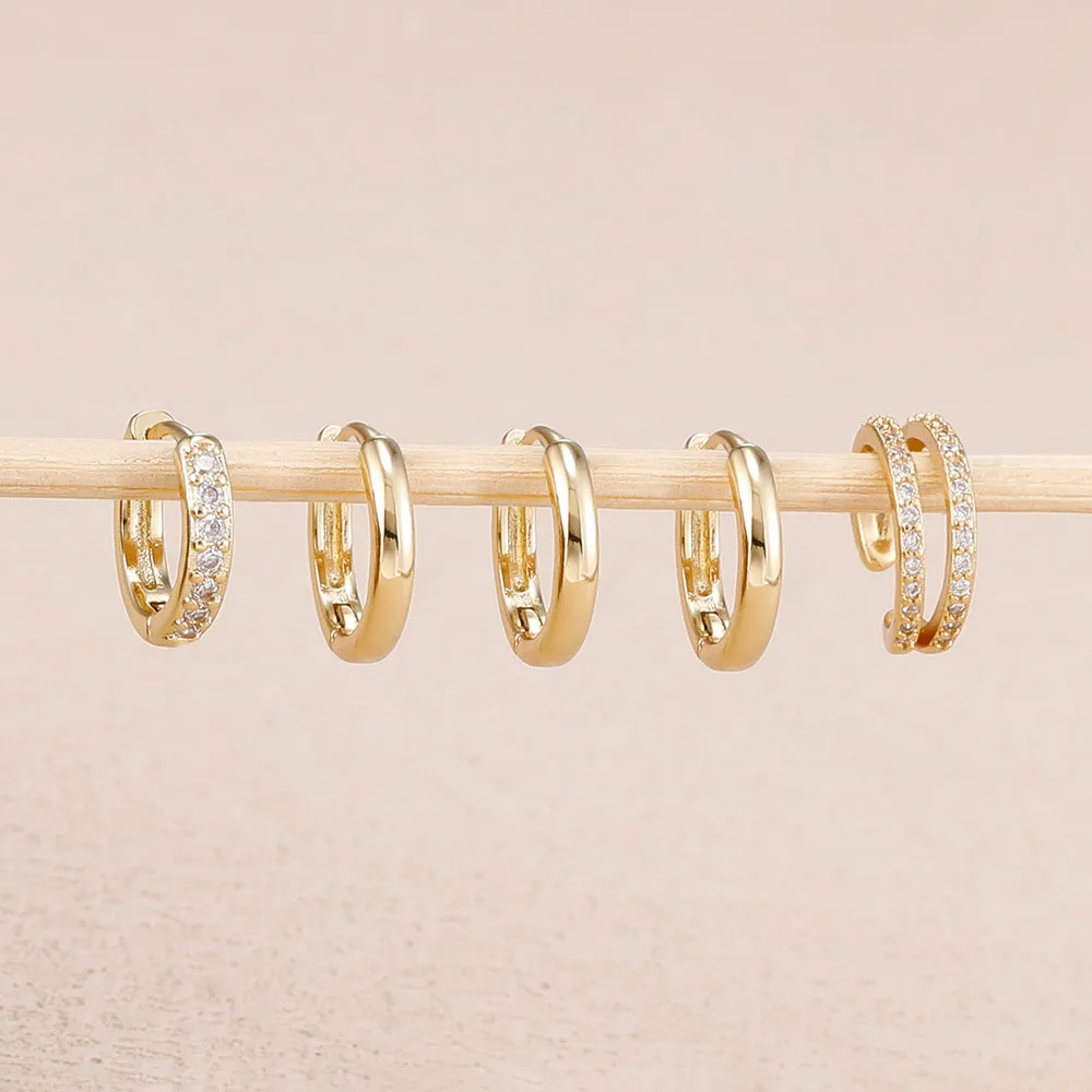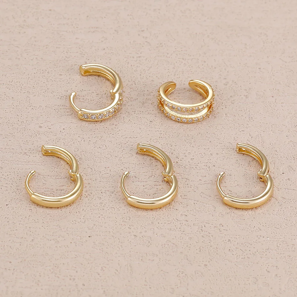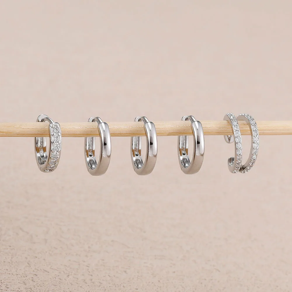 5Pcs Stainless Steel Huggie Round Circle Hoop Earrings Set for Women Crystal Zirconia Cartilage Ear Clip Earrings Jewelry