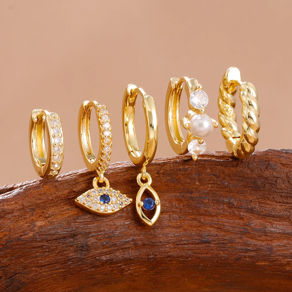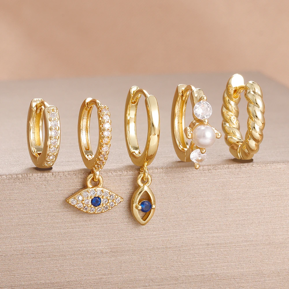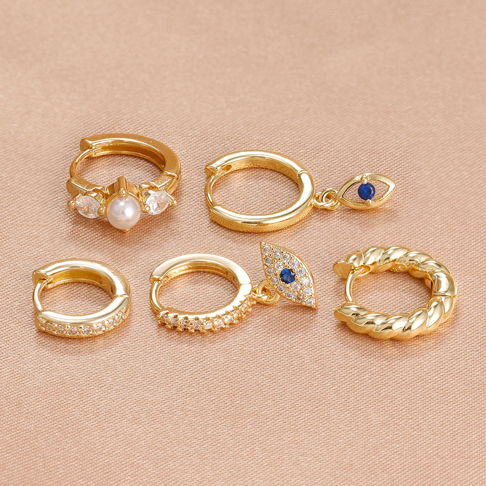 5PCS Women’s Earrings Set Stainless Steel Elegant Pearl Hoop Earring Small Punk Evil Eye Huggie Earings Party Piercing Jewelry