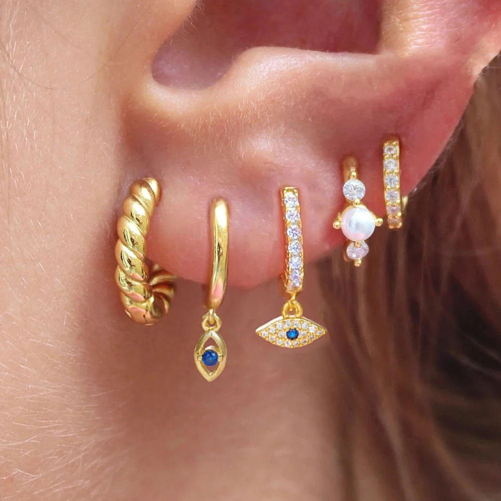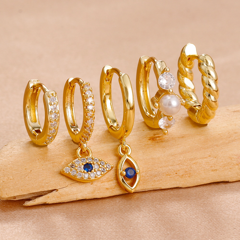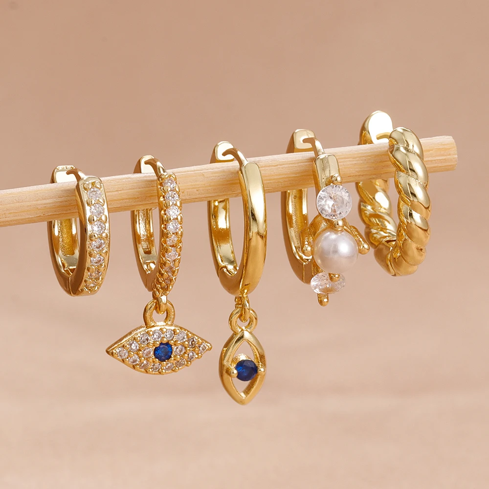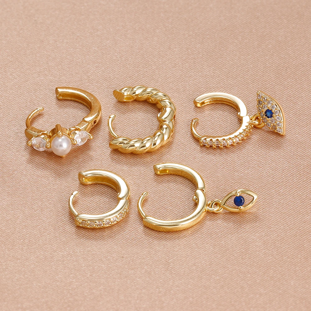5PCS Women’s Earrings Set Stainless Steel Elegant Pearl Hoop Earring Small Punk Evil Eye Huggie Earings Party Piercing Jewelry