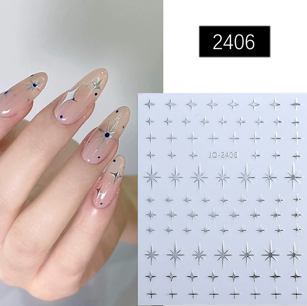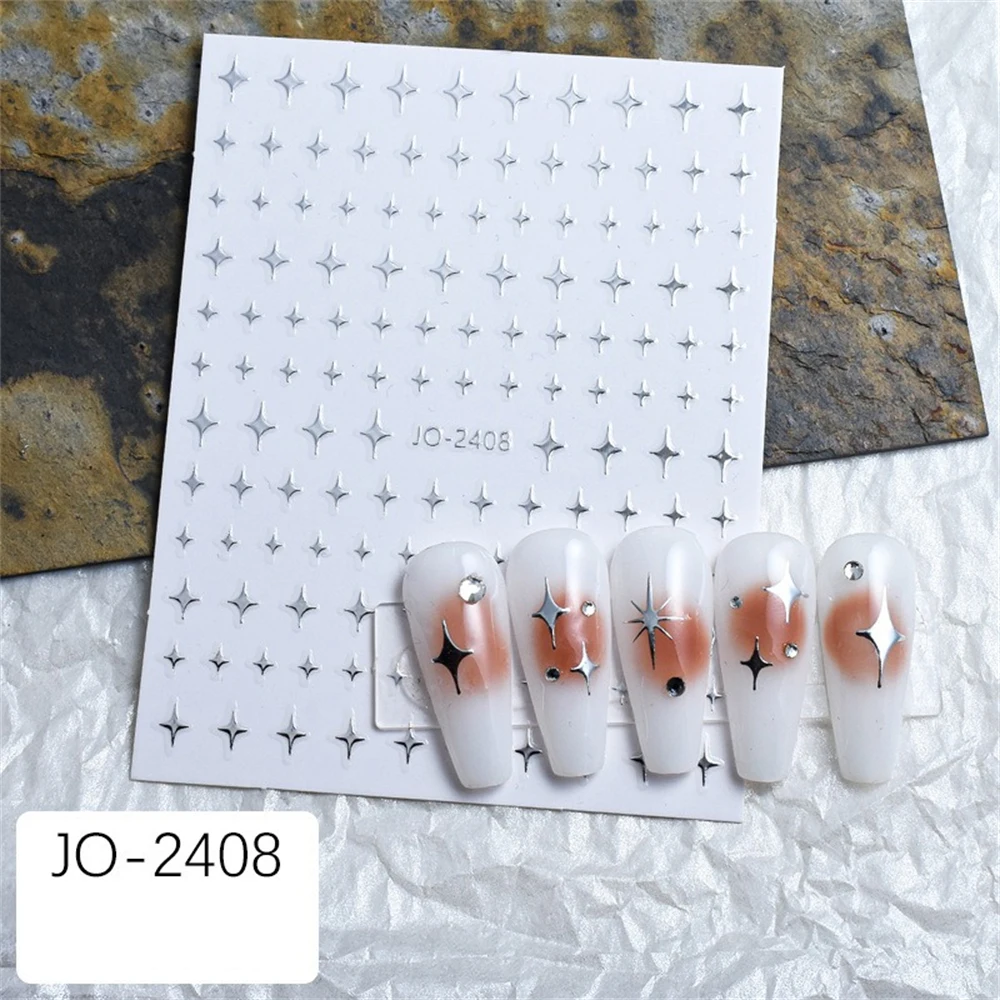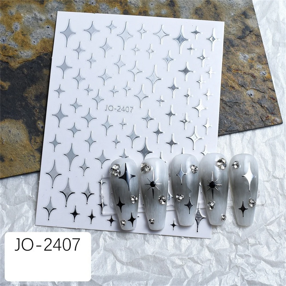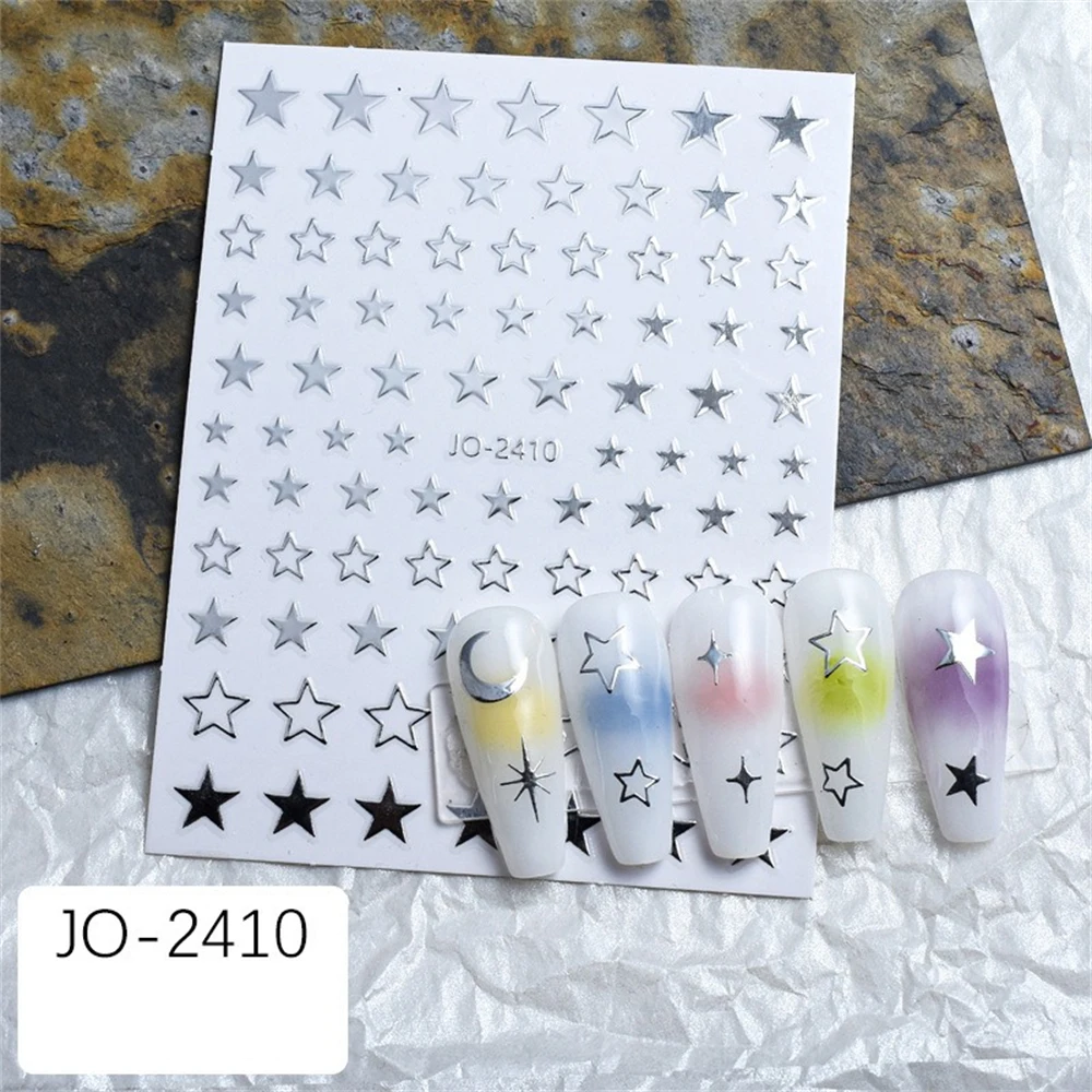 6 Sheets Metal Silver Nail Stickers Metallic 3D Star Nail Art Stickers Decals Self-Adhesive Nail Art Stickers Metal Heart Tools