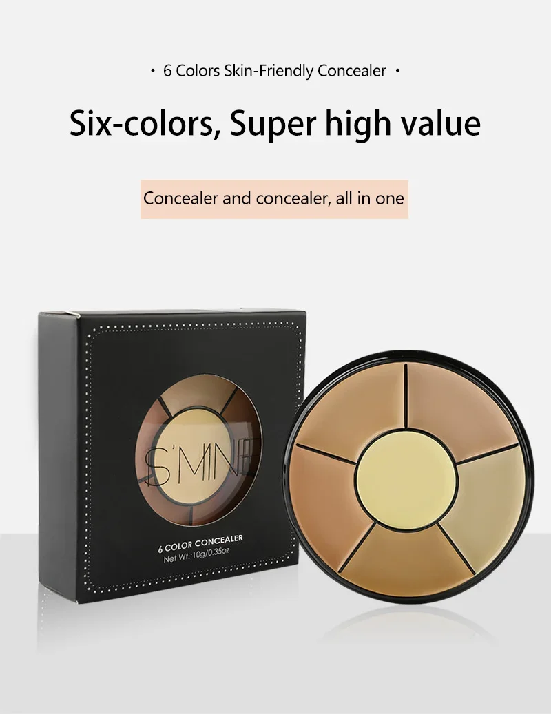 6Colors Concealer Palette Cream Texture Covers Acne Marks Dark Circles Multifunction Face Makeup Lasting Brighten Face Cosmetics