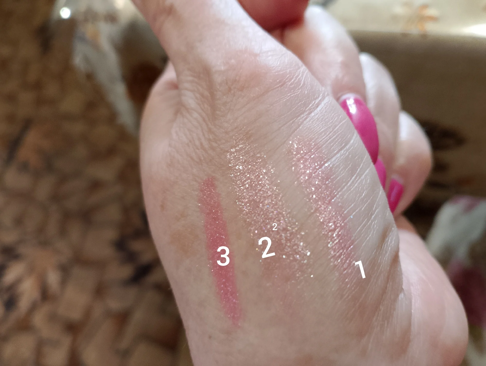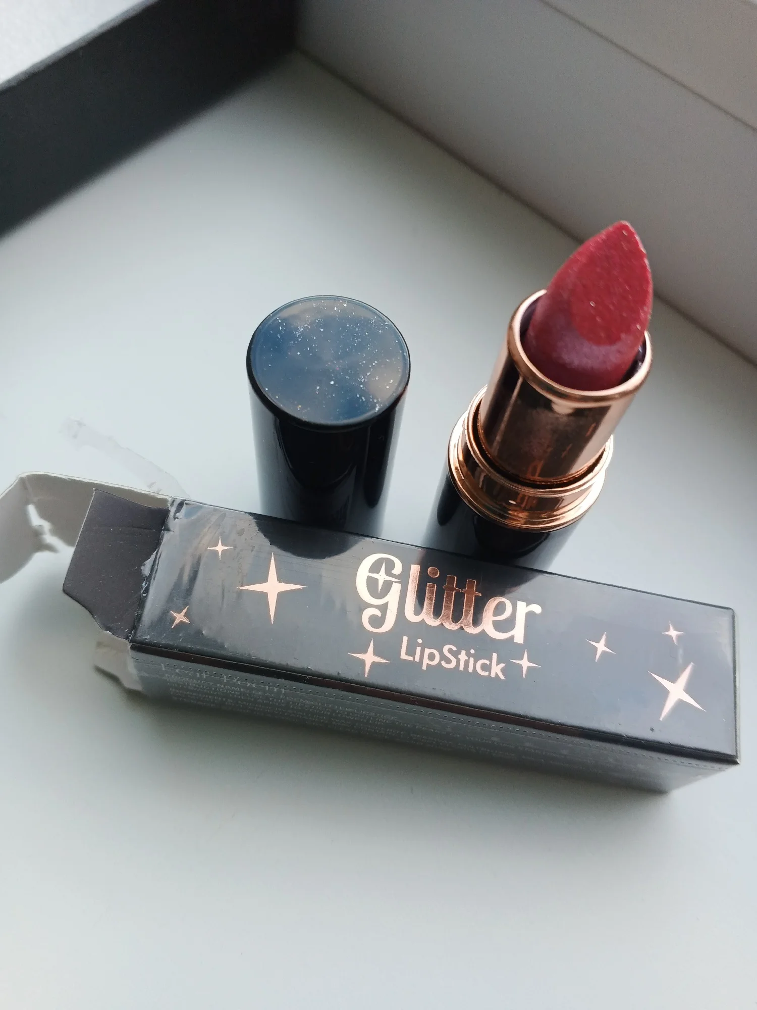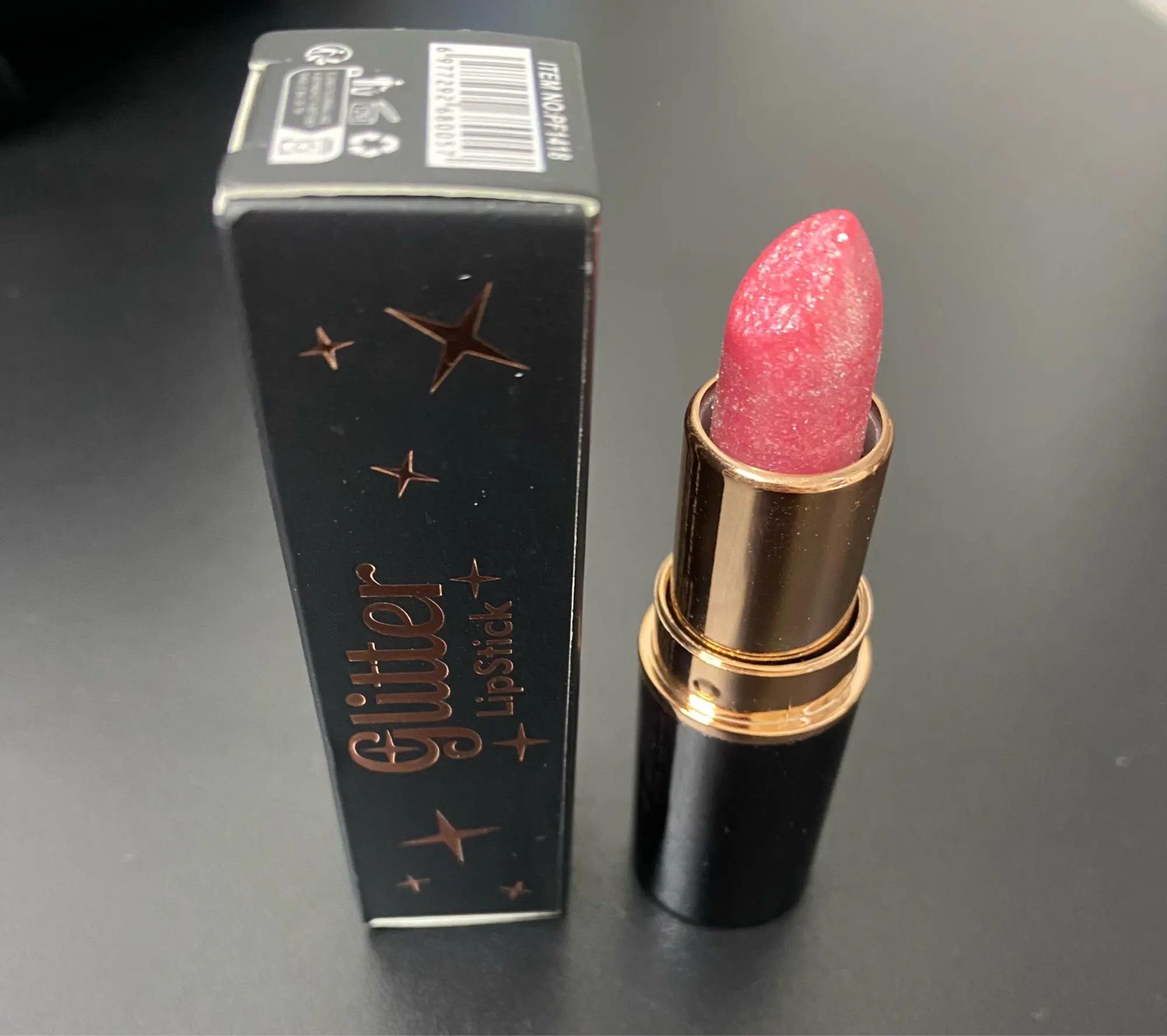 Beautiful glittery lipstick. Master, they look lovely. better as in the picture. I recommend.