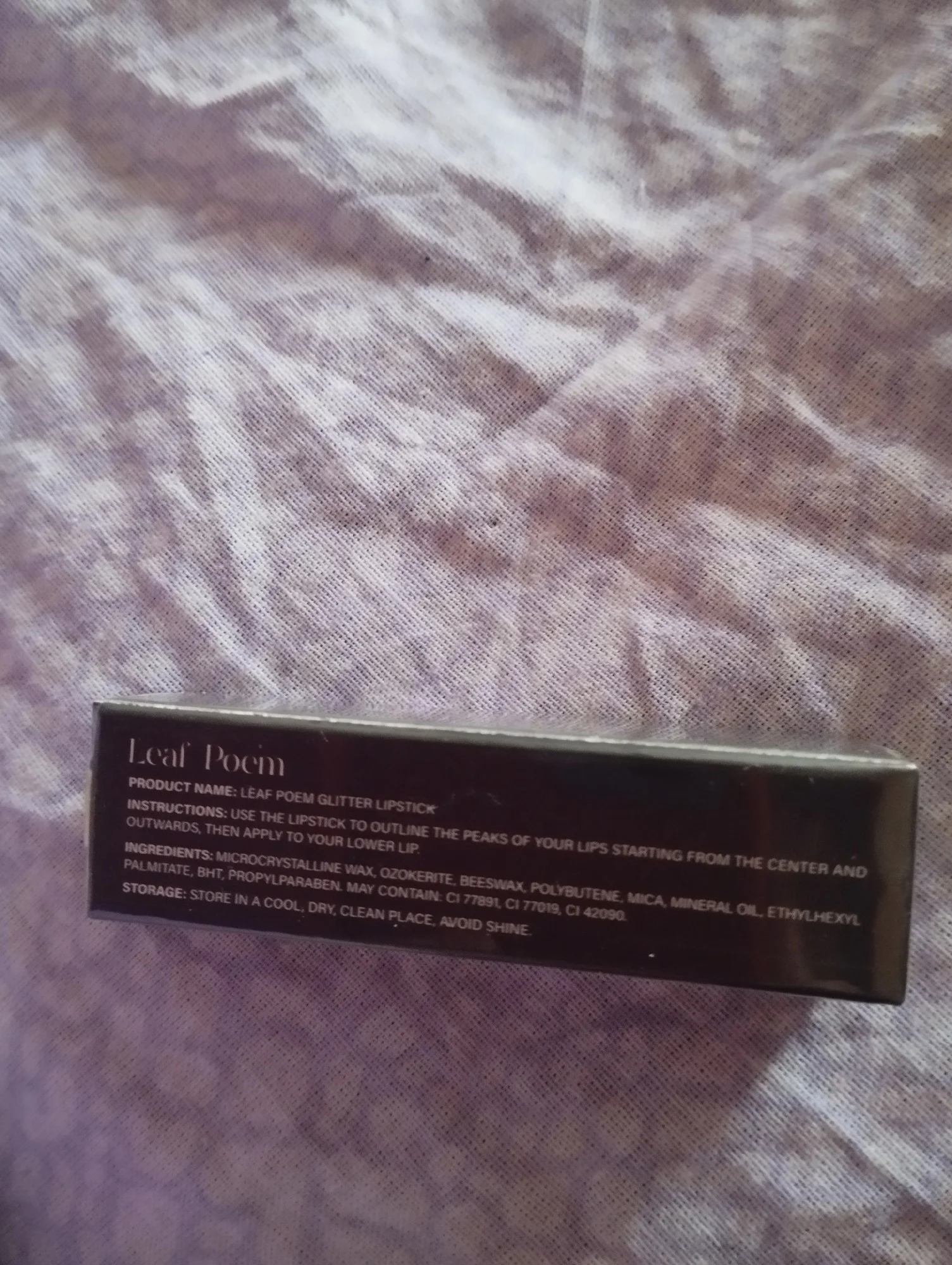 The lipstick arrived well packaged. In the box. Too many sparkles. Too much in my opinion. But it doesn't slip off the lips.