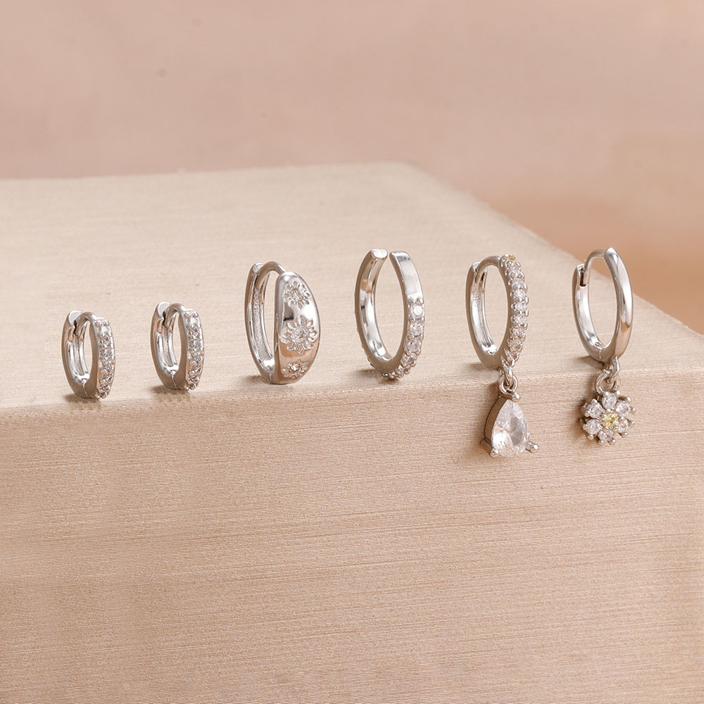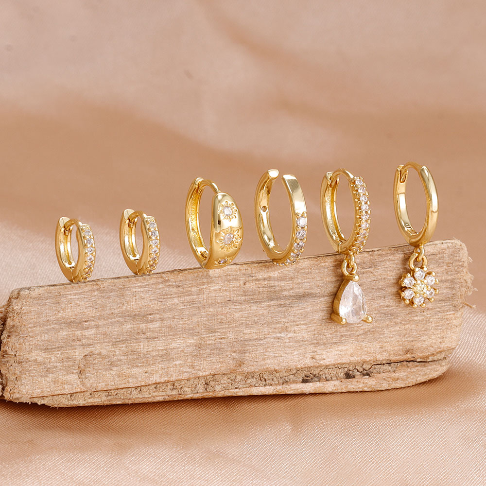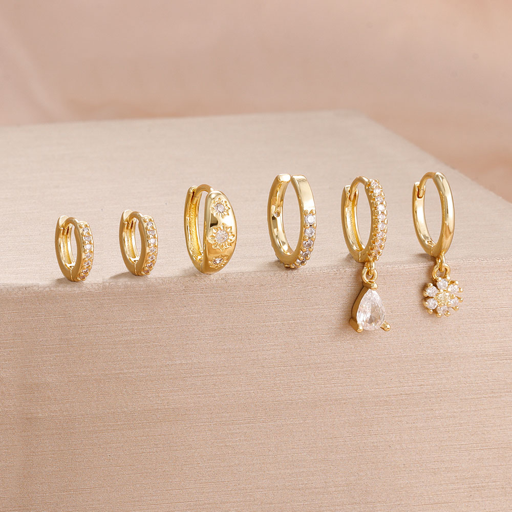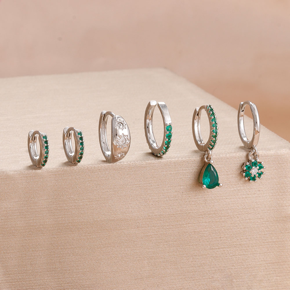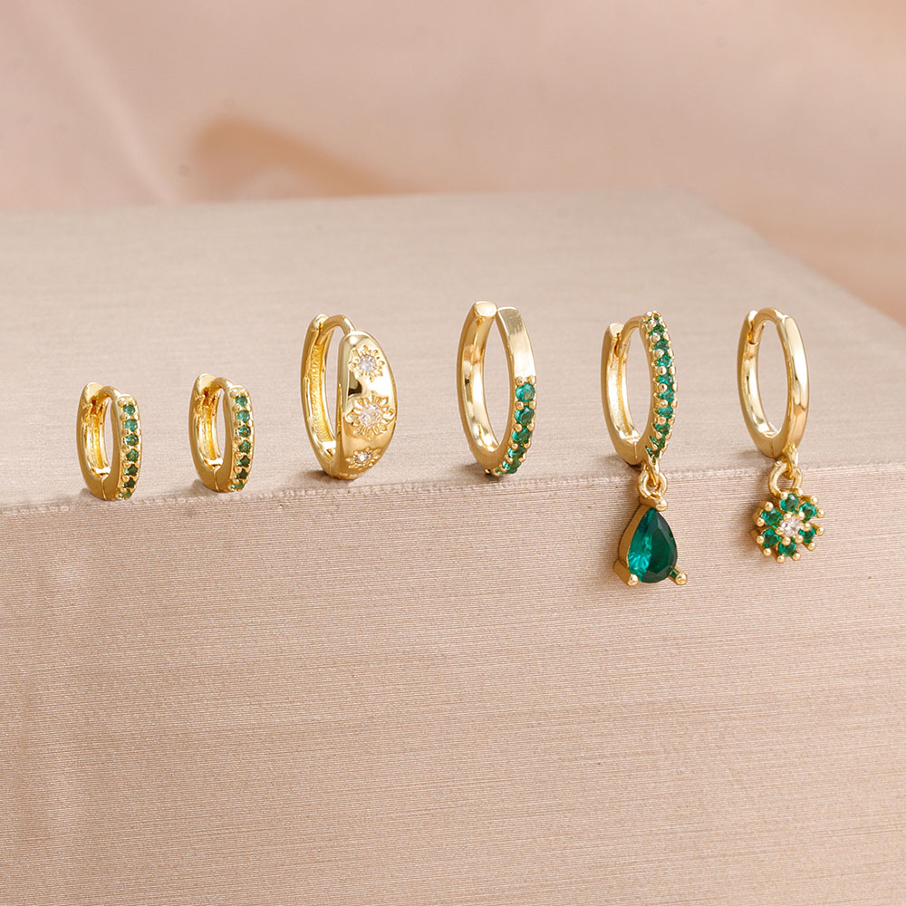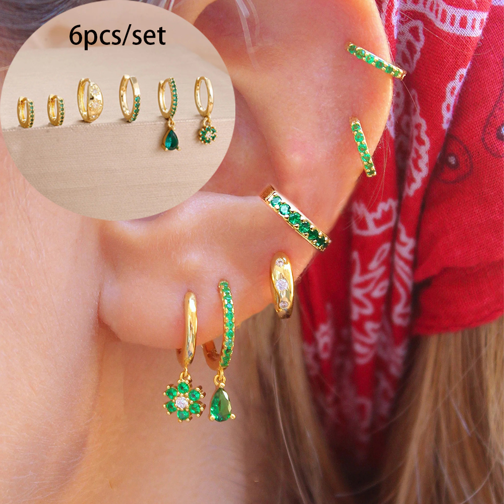 6PCS Exquisite Green Cubic Zircon Star Huggie Hoop Earring Set For Women Small Round Tragus Cartilage Piercing Earring Jewelry