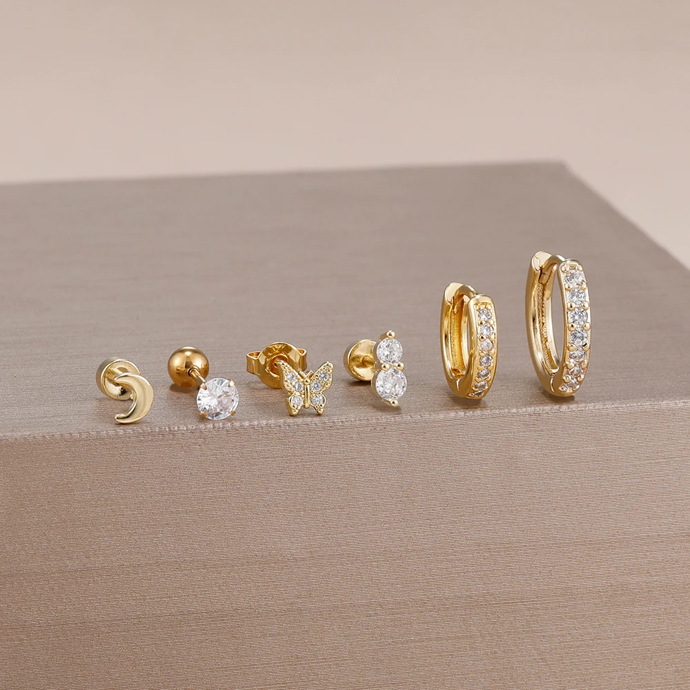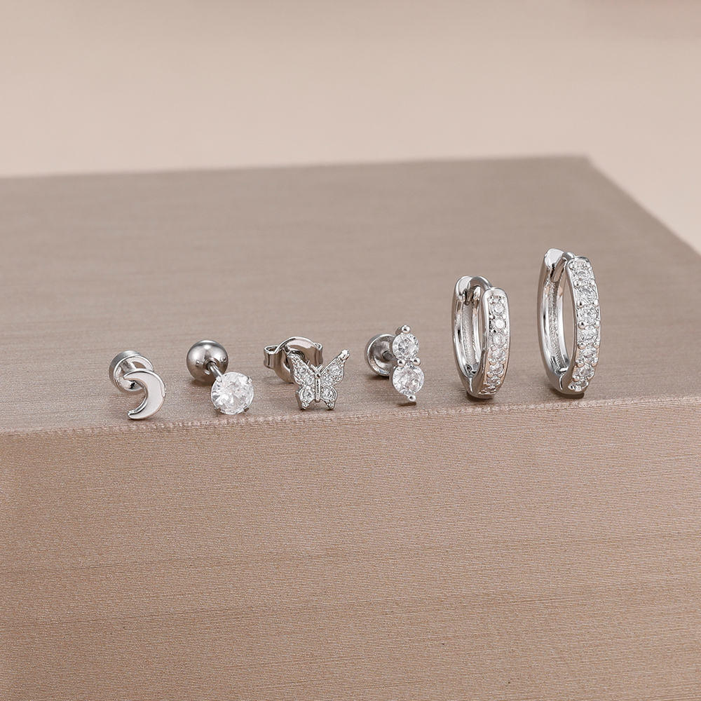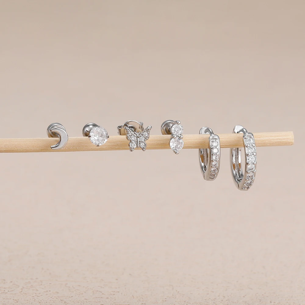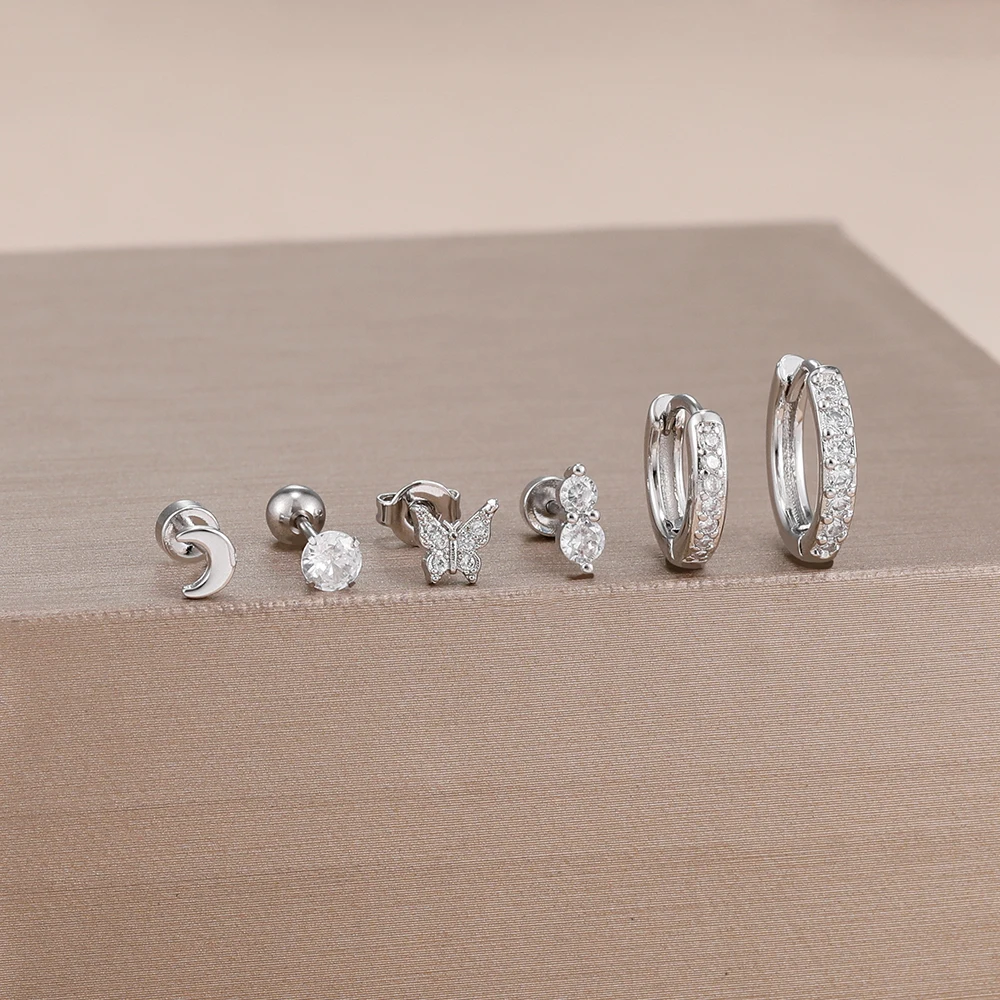 6piece Set Exquisite Moon Crystal Butterfly Stud Earrings For Women Korean Crystal Romantic Piercing Earrings Party Jewelry Gift