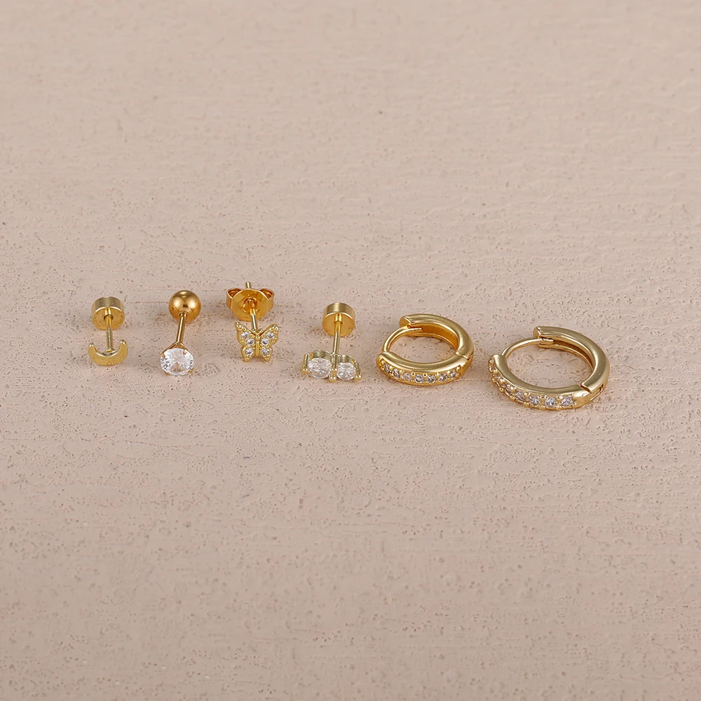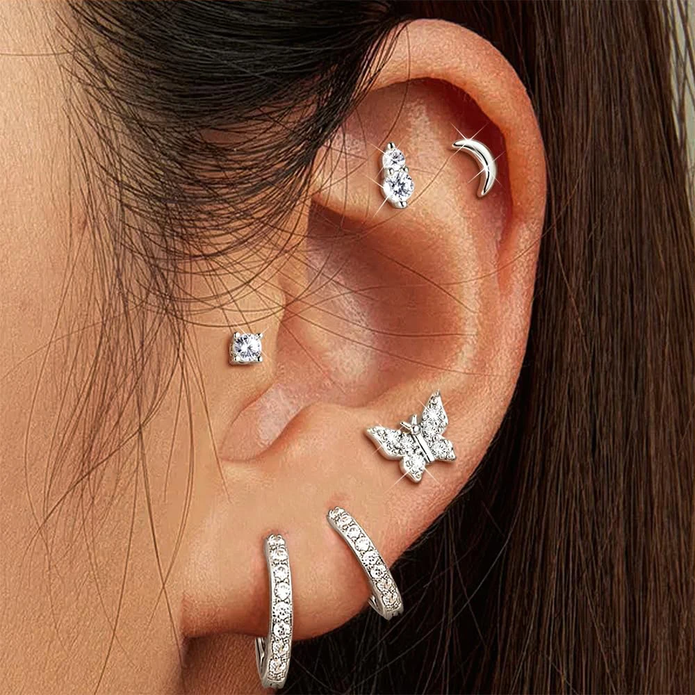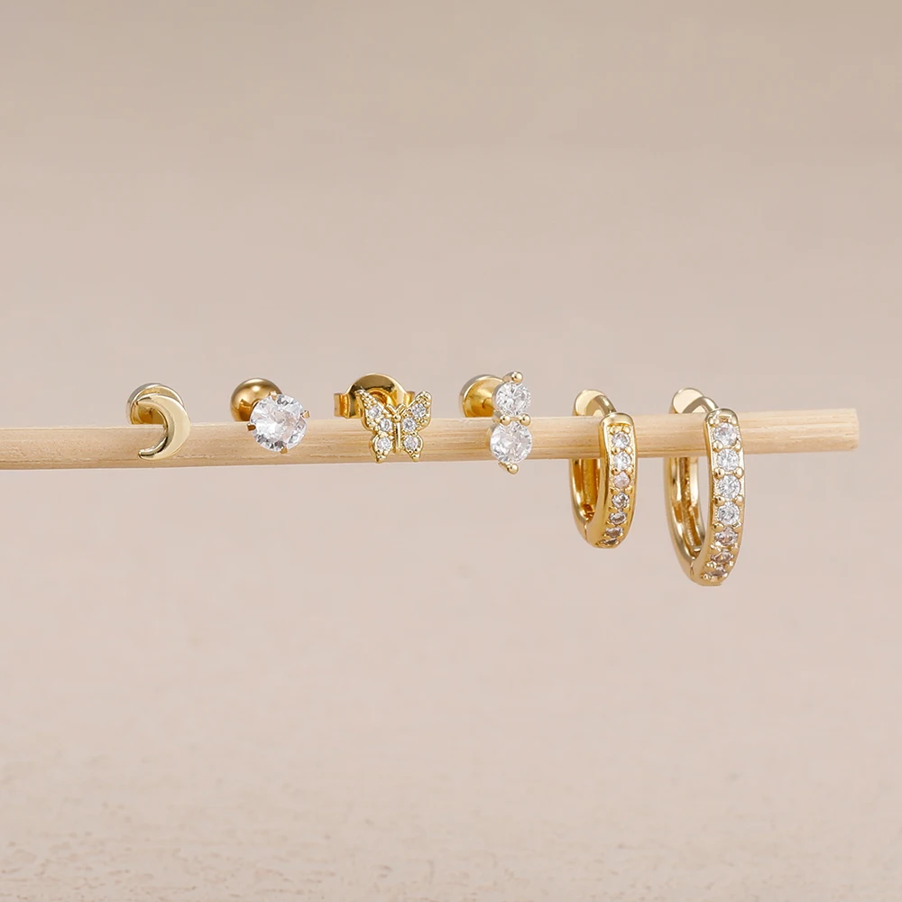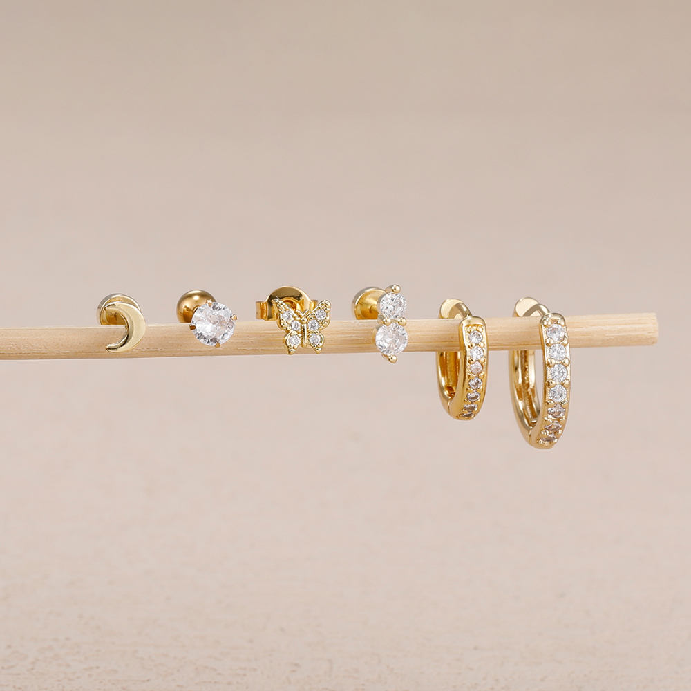 6piece Set Exquisite Moon Crystal Butterfly Stud Earrings For Women Korean Crystal Romantic Piercing Earrings Party Jewelry Gift