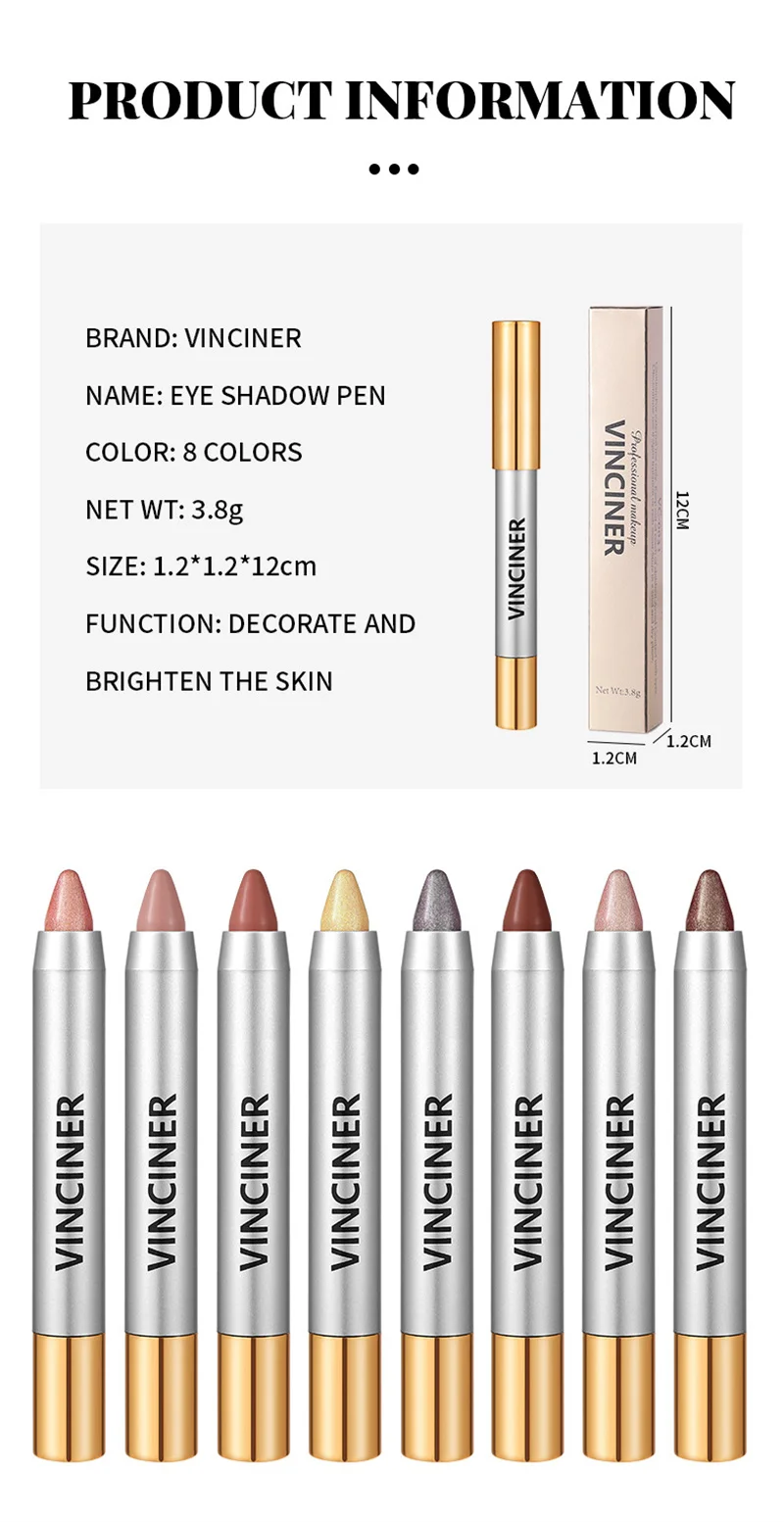 8 Colors Pearlescent Eyeshadow Pencil Waterproof Long Lasting Shimmer Highlighter & Eye Shadow Eyeliner Stick Eyes Makeup Tool