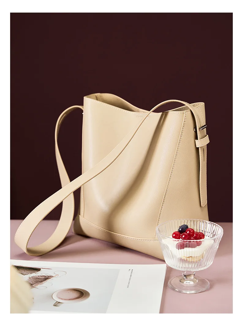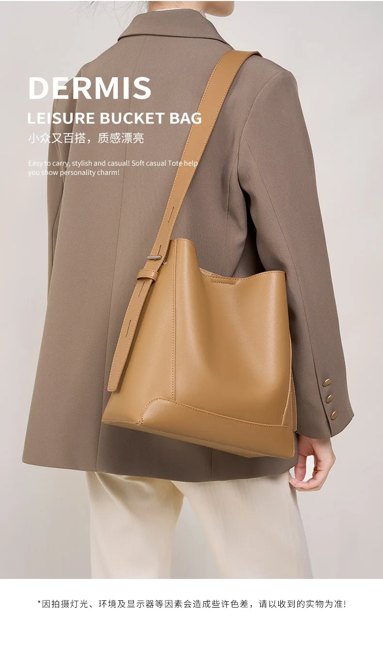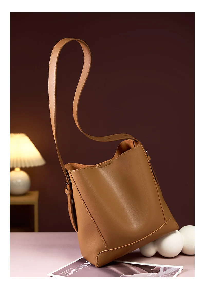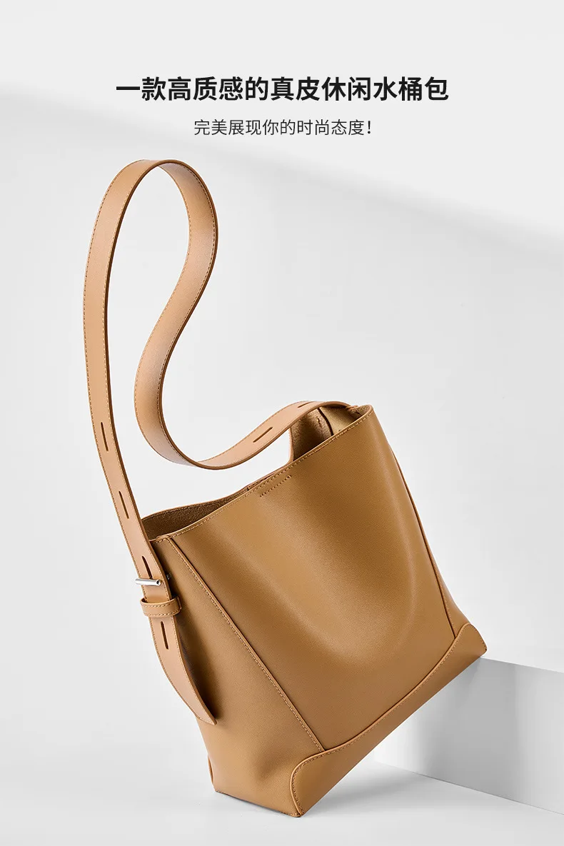 Split leather Cowhide Women Shoulder Bag 2025 New Fashion Ladies Crossbody Bag Large capacity Tote Commuter Bucket Bag gift