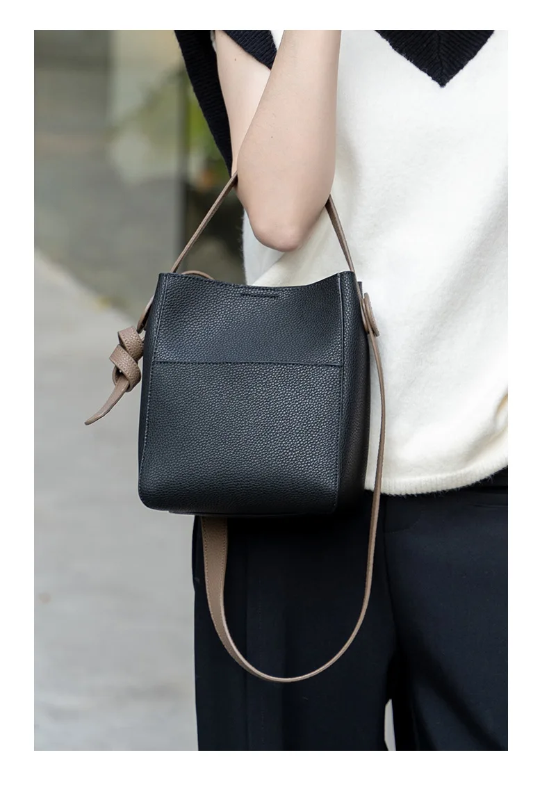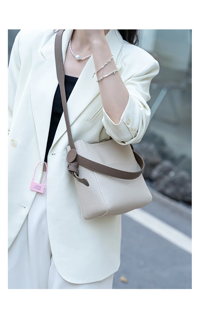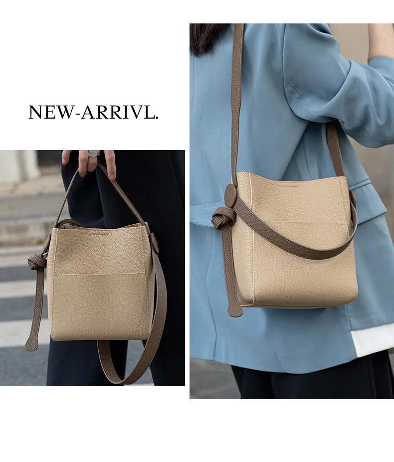 NEW Genuine Leather Women’s Crossbody Bag bucket Daily Cusual Handbag Large Capacity commuter Soft Cowhide shoulder bag as gift