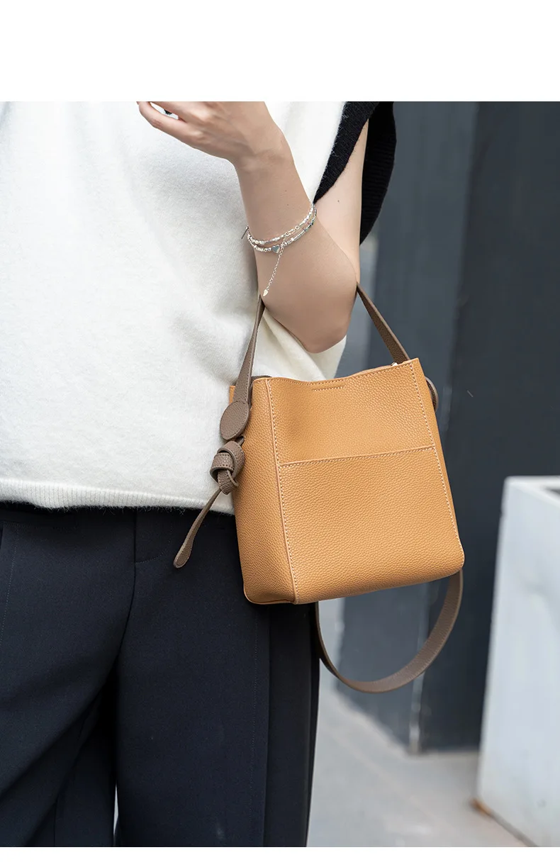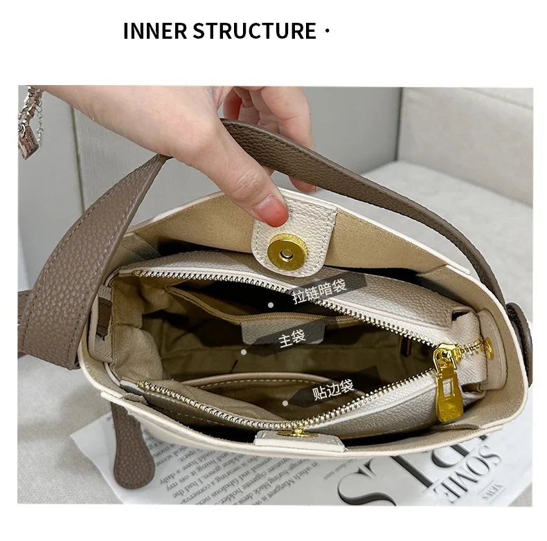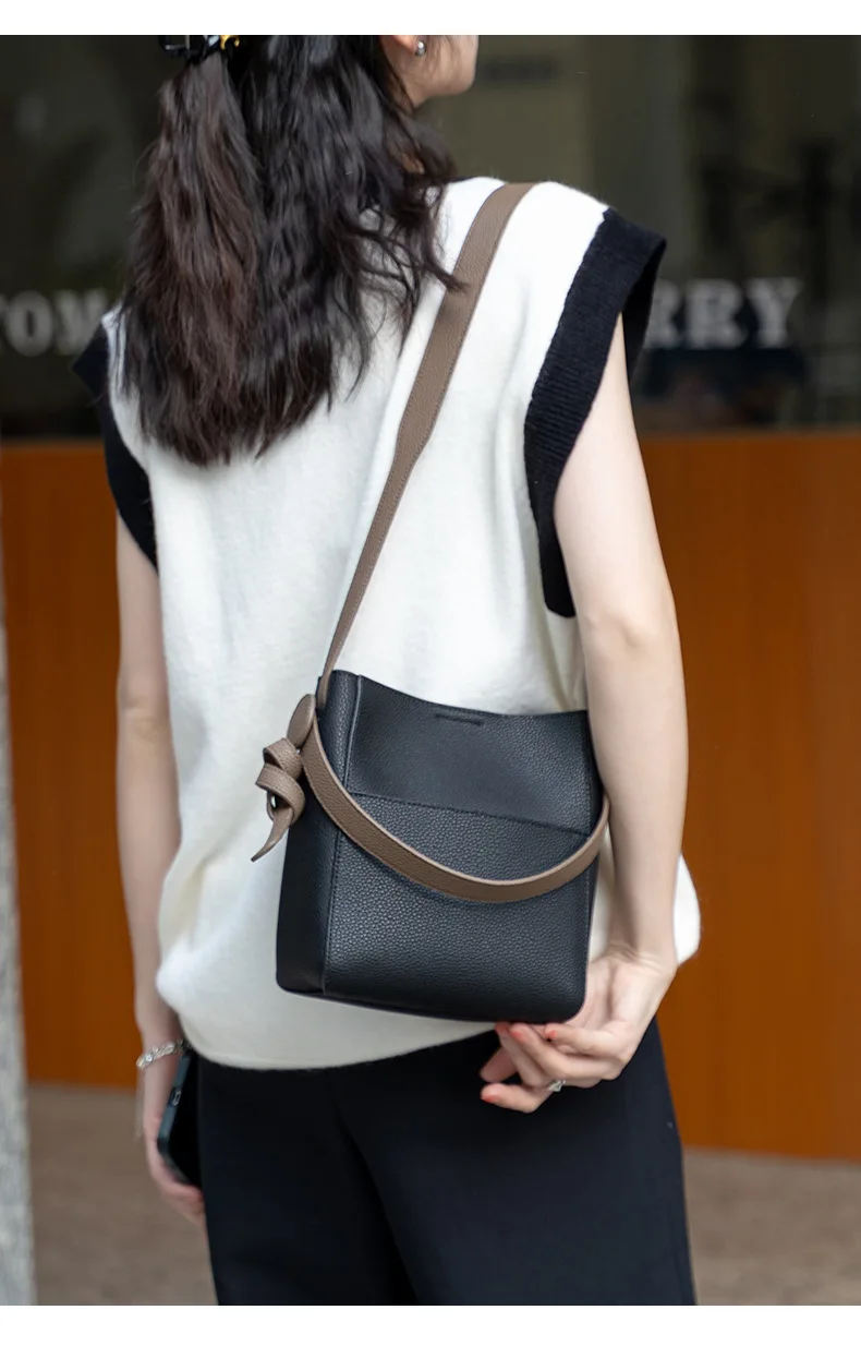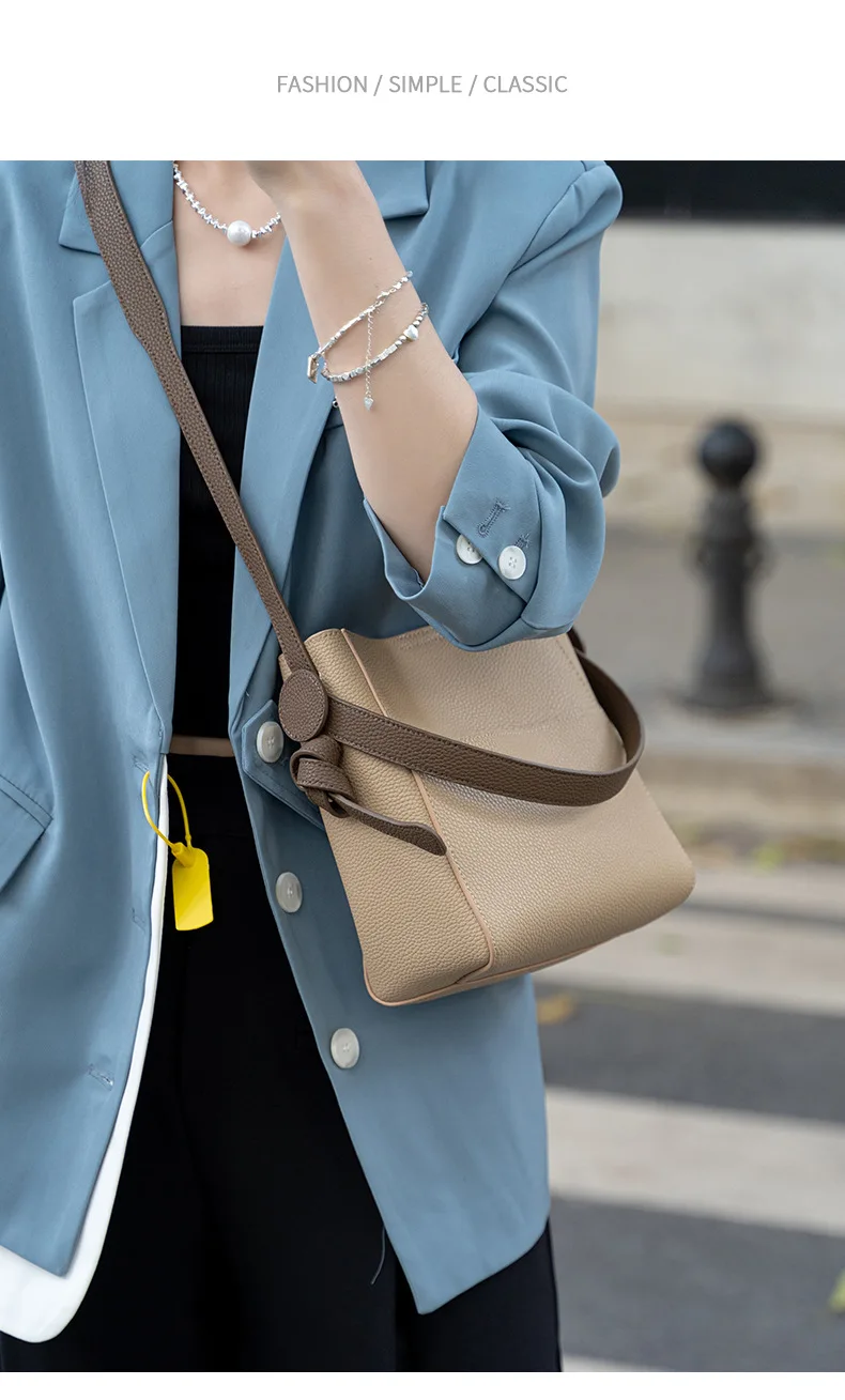 NEW Genuine Leather Women’s Crossbody Bag bucket Daily Cusual Handbag Large Capacity commuter Soft Cowhide shoulder bag as gift