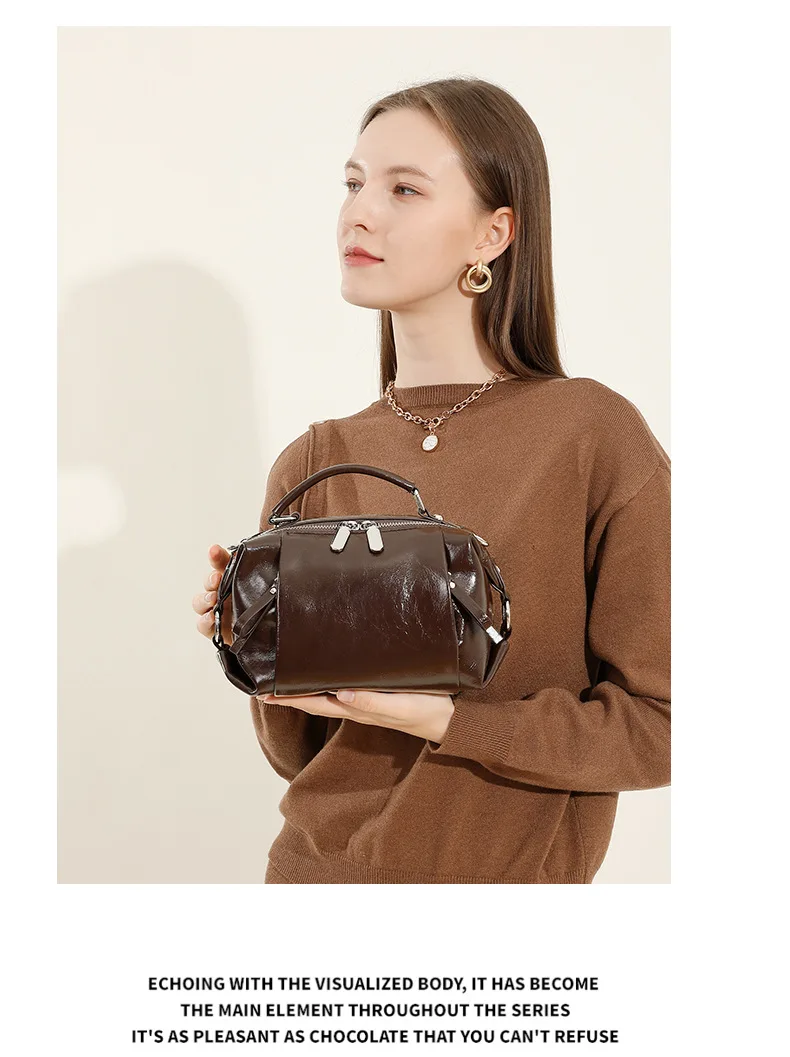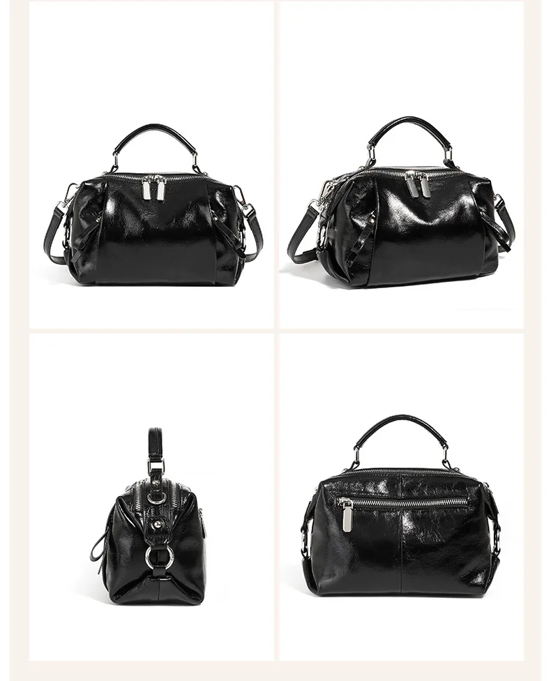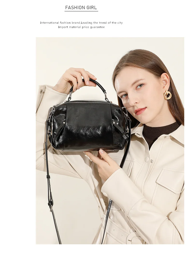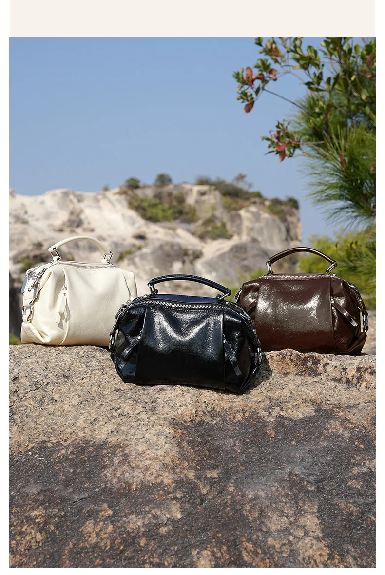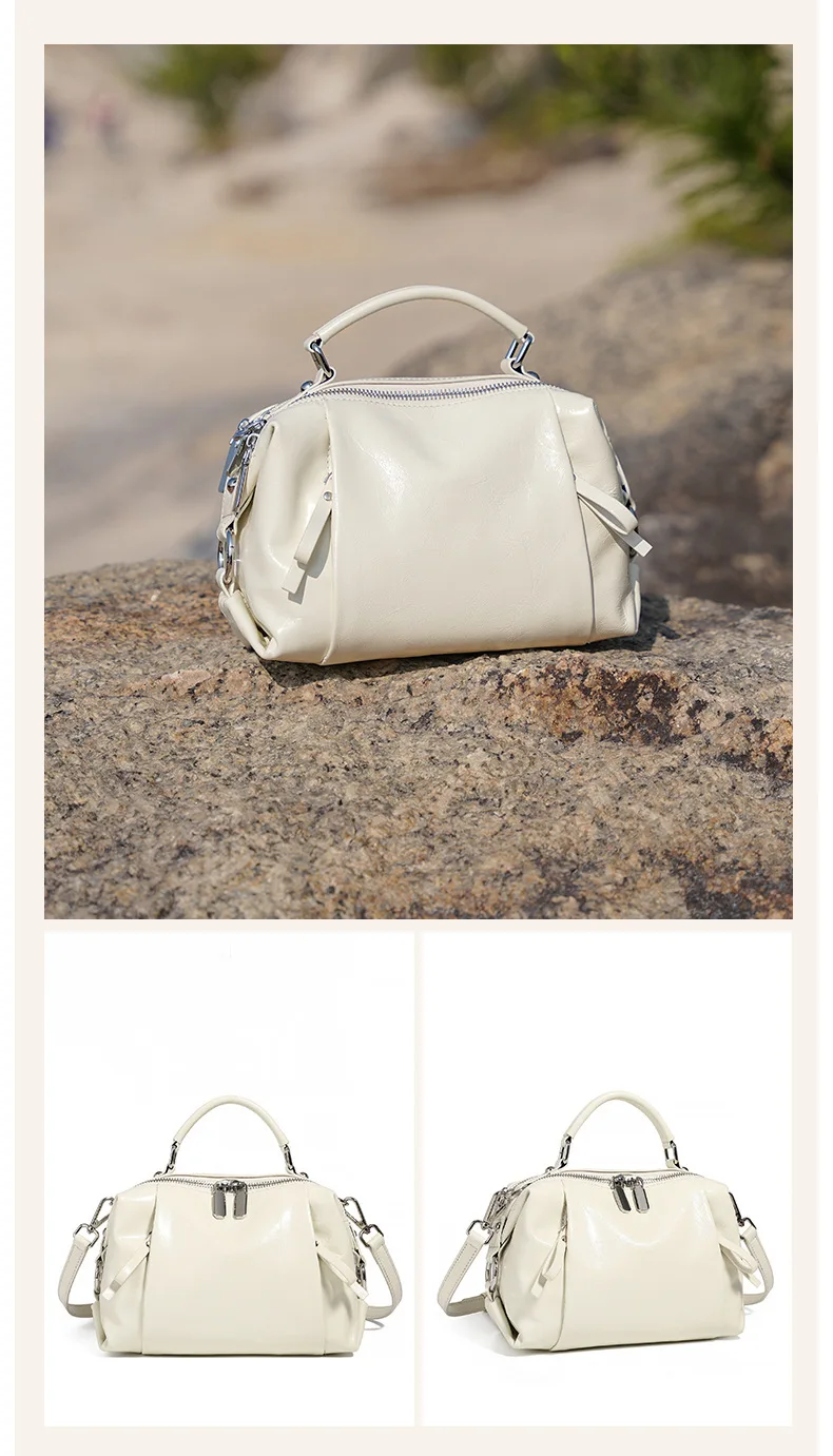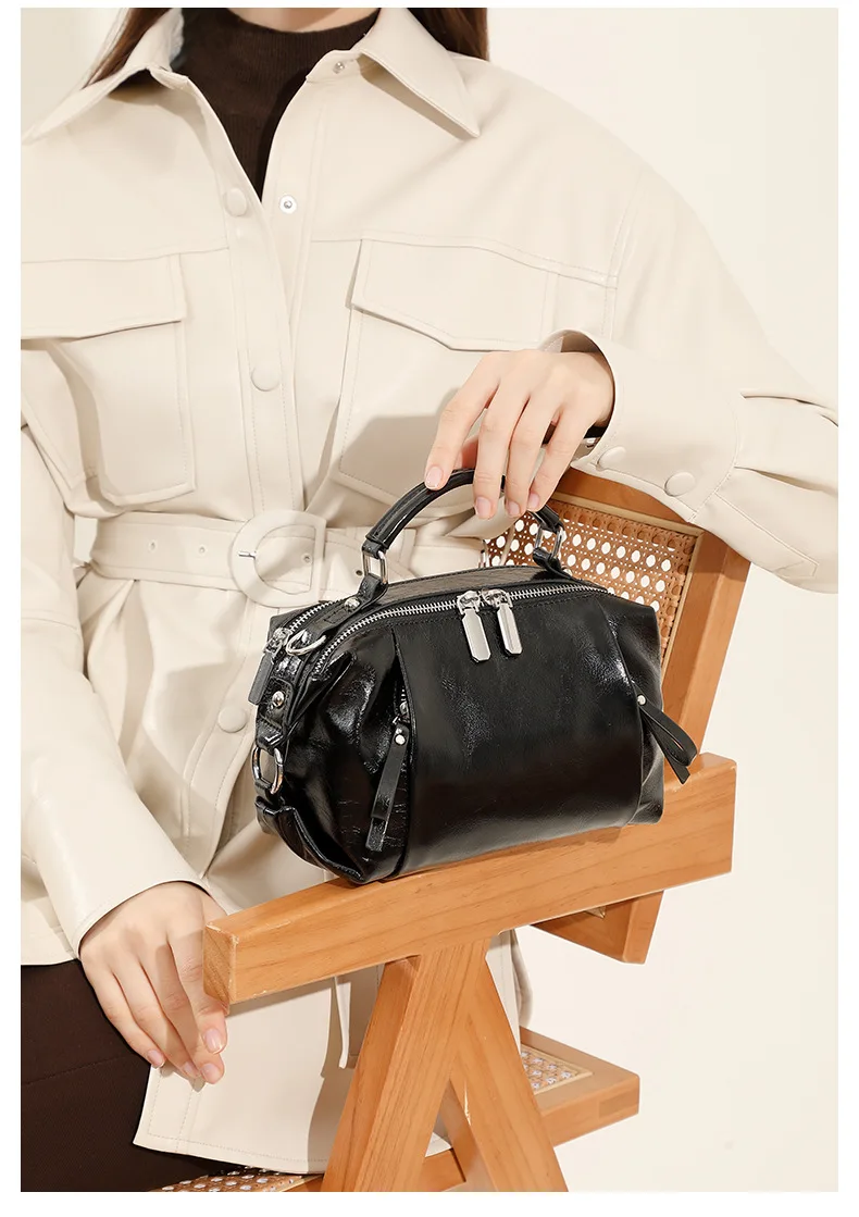2025 Genuine Leather Women Boston Bag Crossbody Shoulder Bag luxury Cowhide Commuter Shopping Pillow Bag Handbag Gift for girl