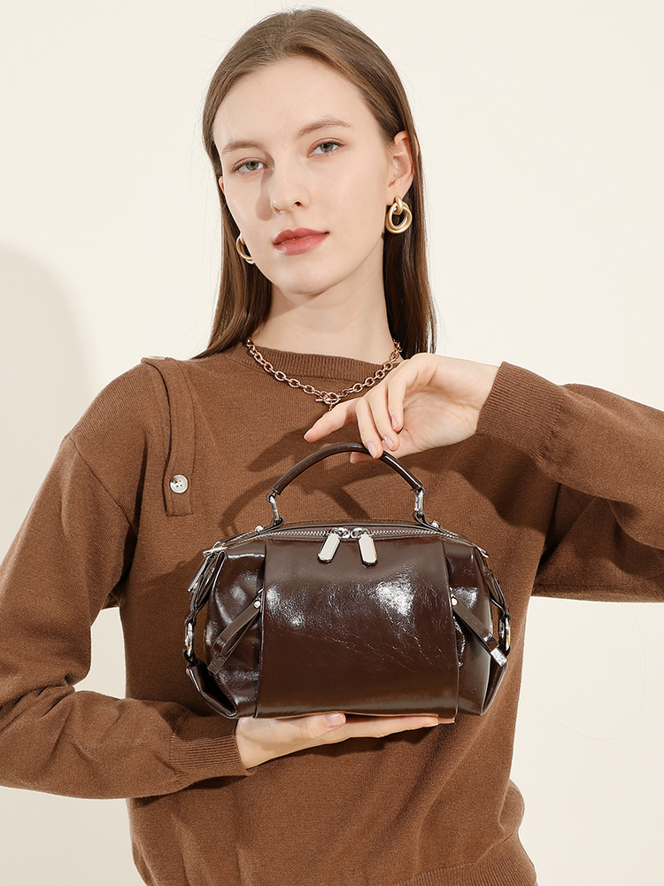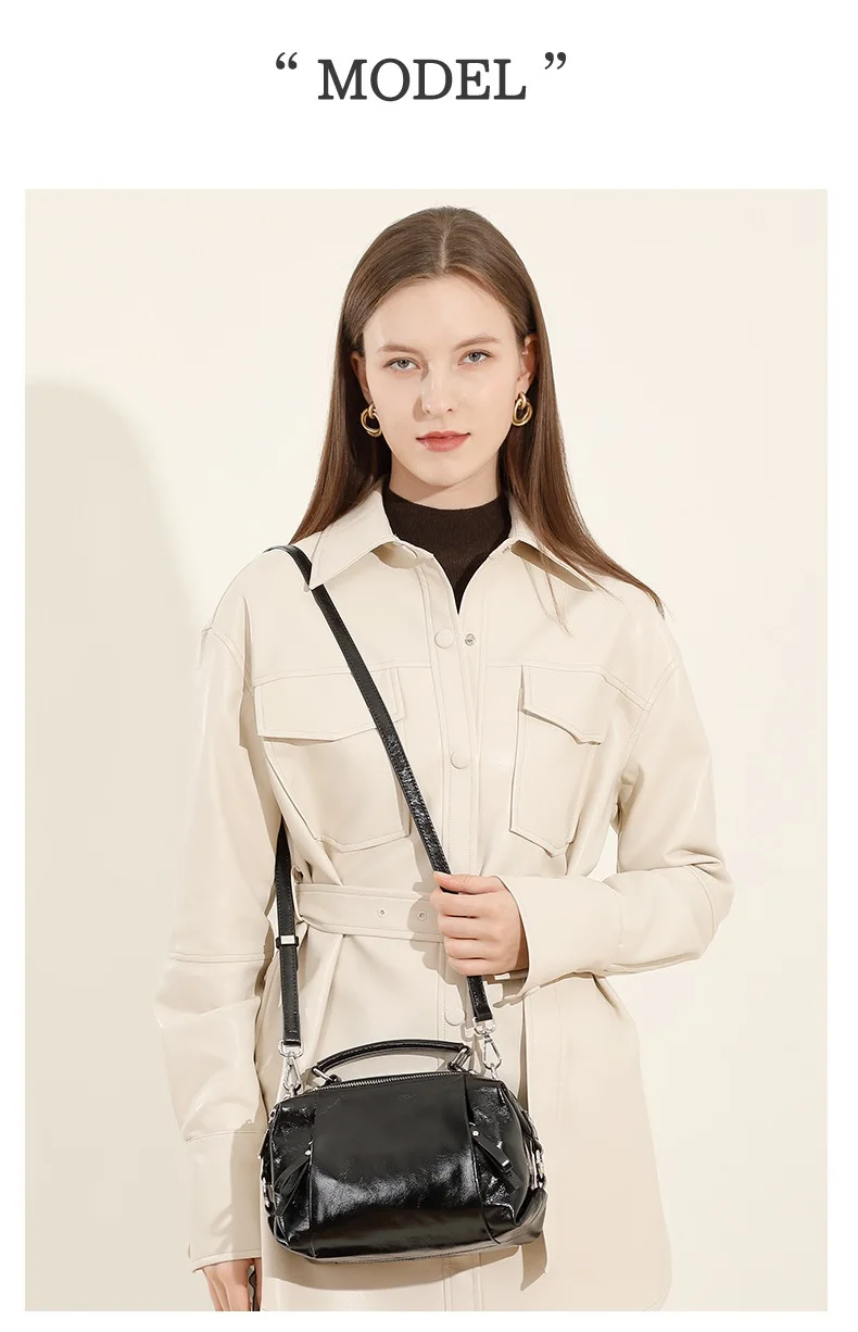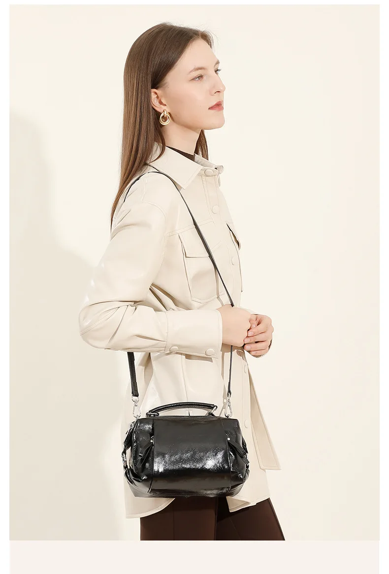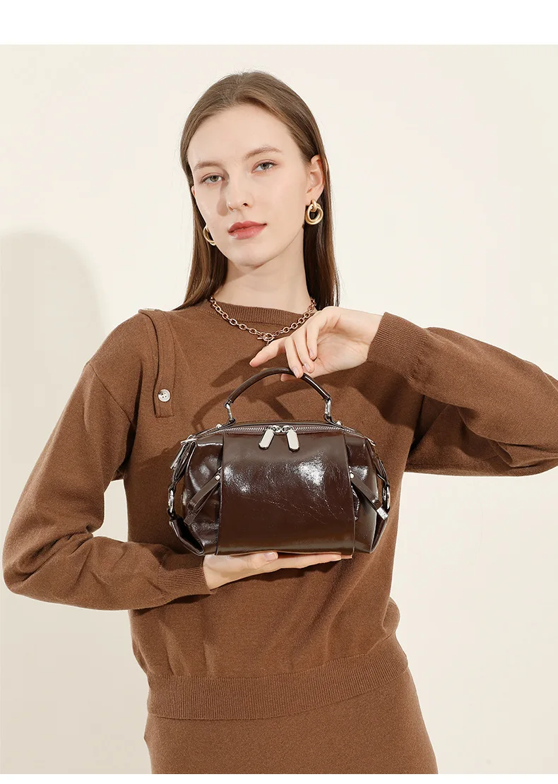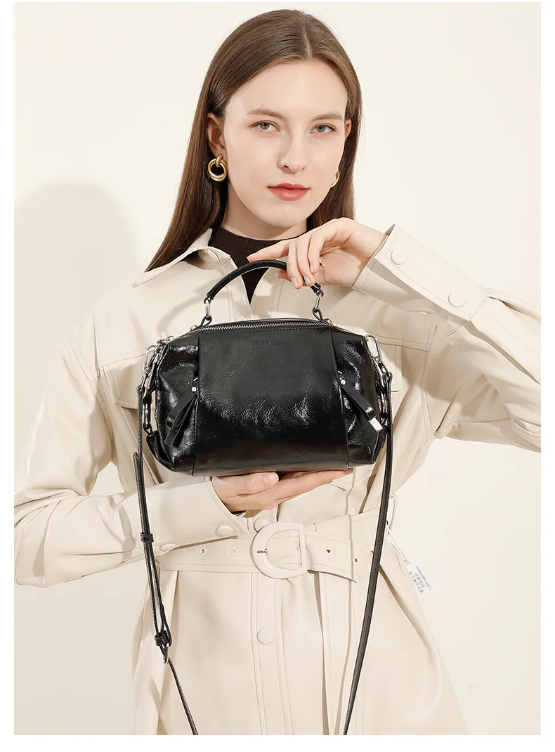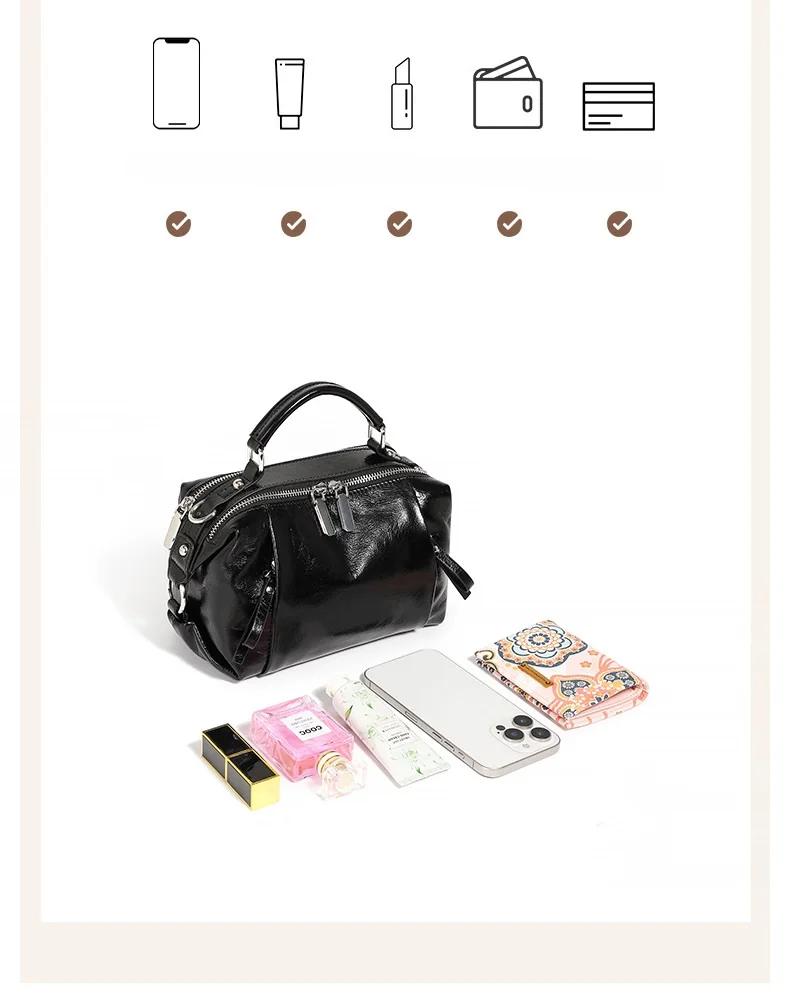 2025 Genuine Leather Women Boston Bag Crossbody Shoulder Bag luxury Cowhide Commuter Shopping Pillow Bag Handbag Gift for girl
