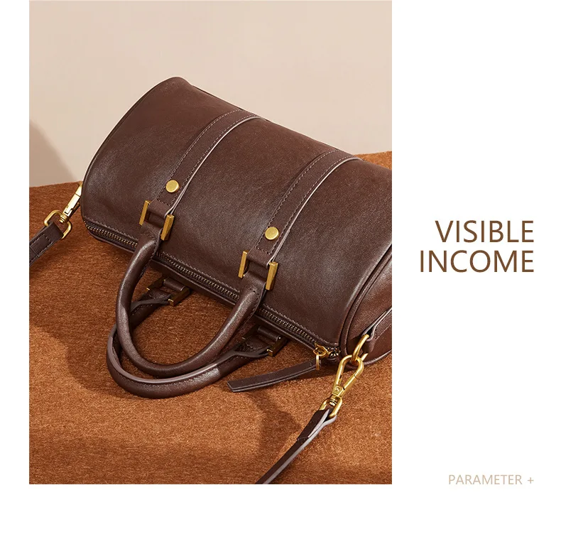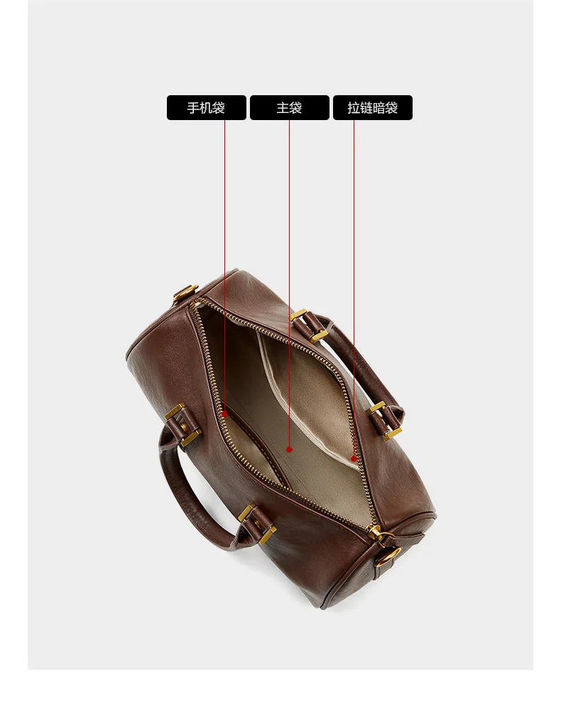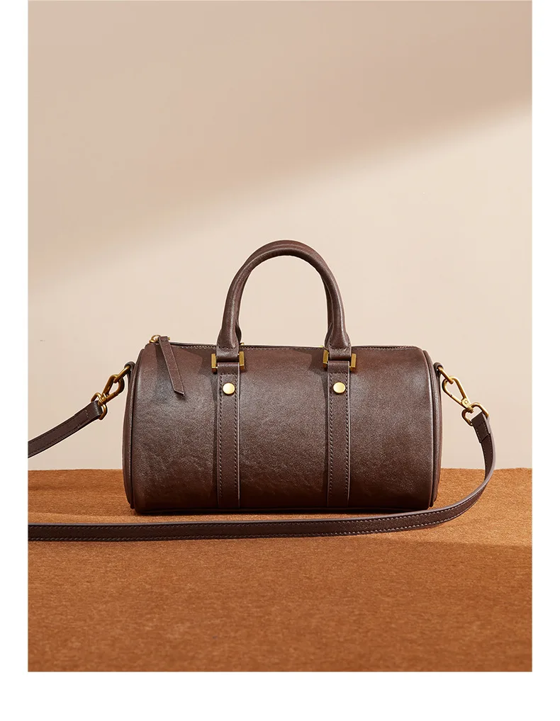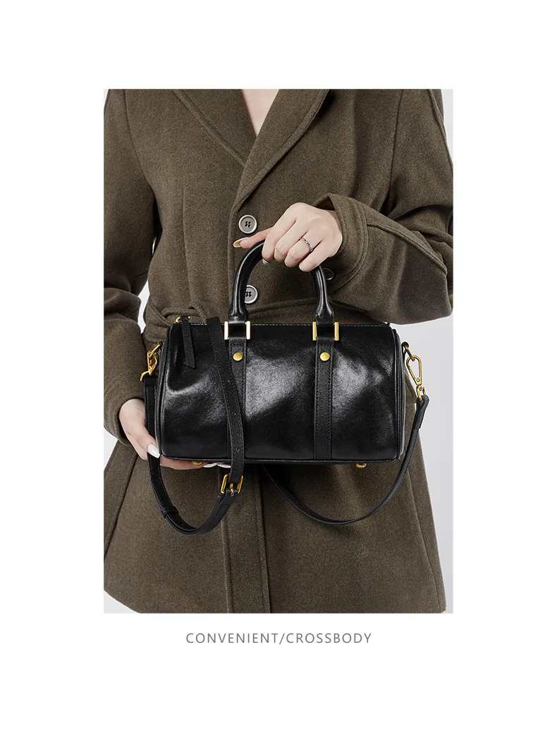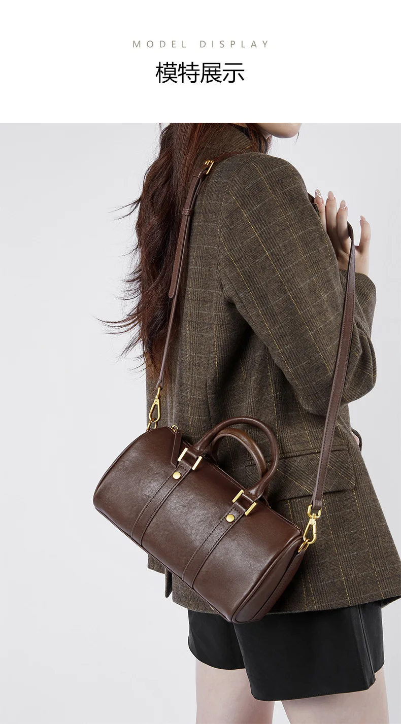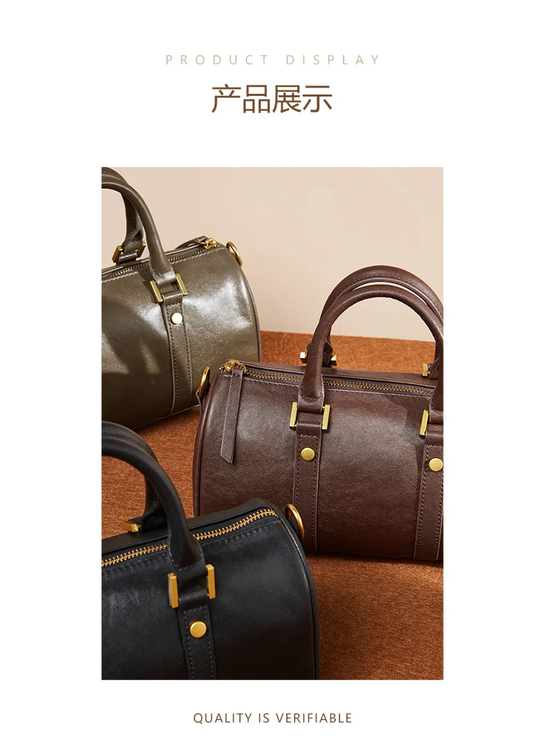 100% Genuine Leather Vintage Women Handbag Shoulder Bag Luxury Cowhide Boston bag Ladies Commuting Crossbody Bag For Shopping