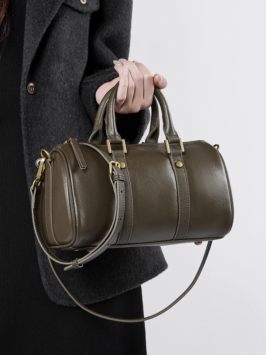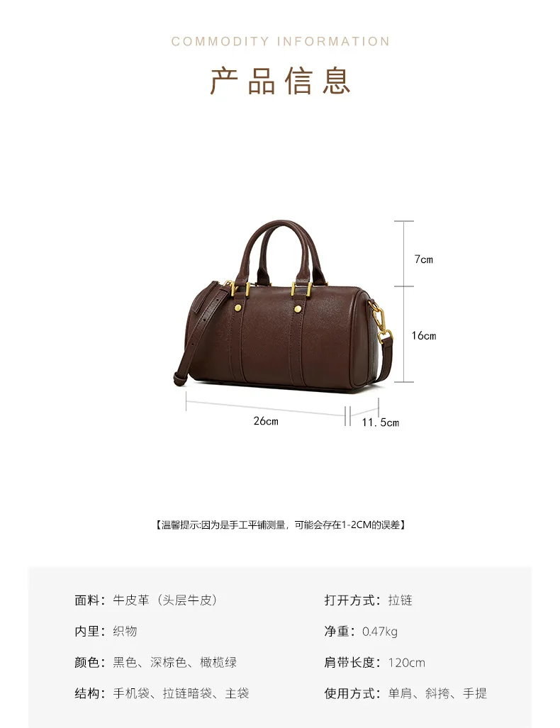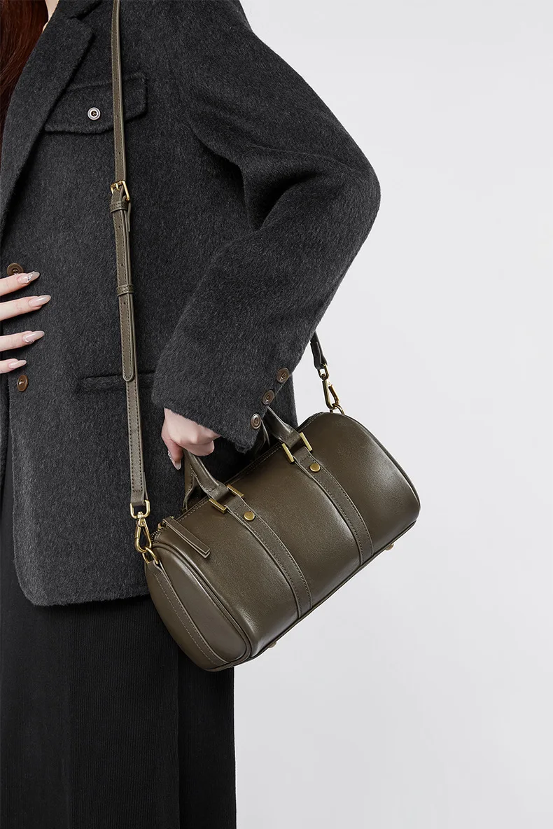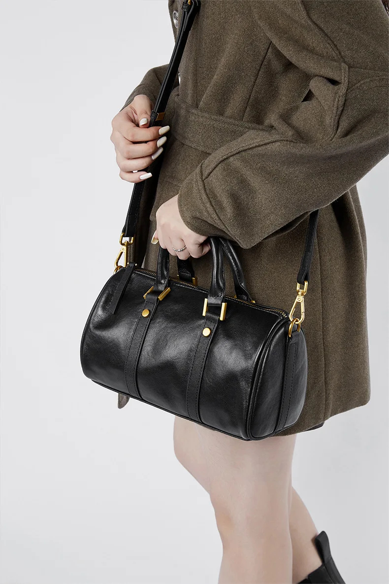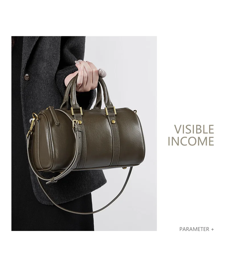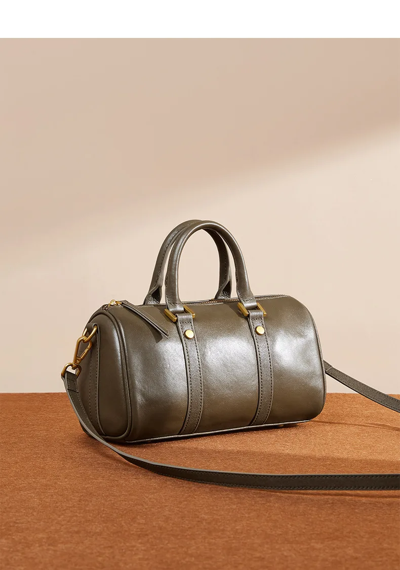 100% Genuine Leather Vintage Women Handbag Shoulder Bag Luxury Cowhide Boston bag Ladies Commuting Crossbody Bag For Shopping