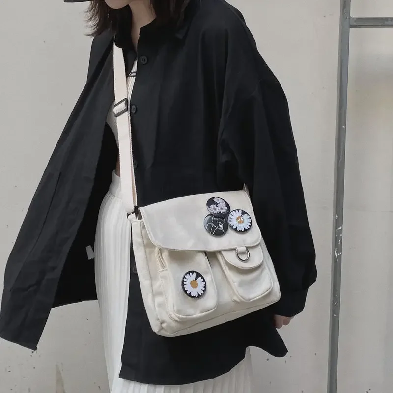 Korean Style Teenager Canvas Crossbody bag Youth Ladies Fashion Shoulder Bag Student Large Capacity Men Woman Packet Cute Bag