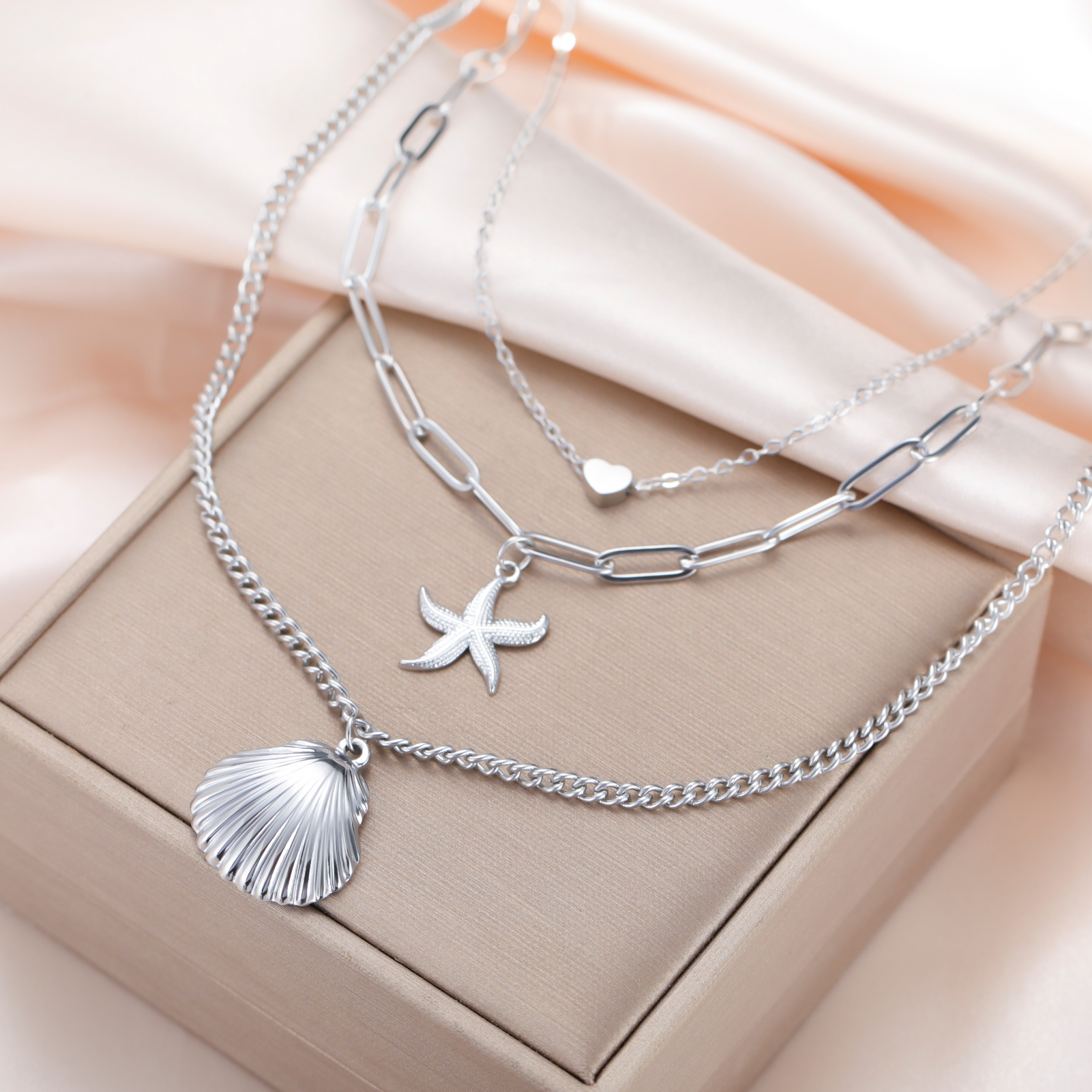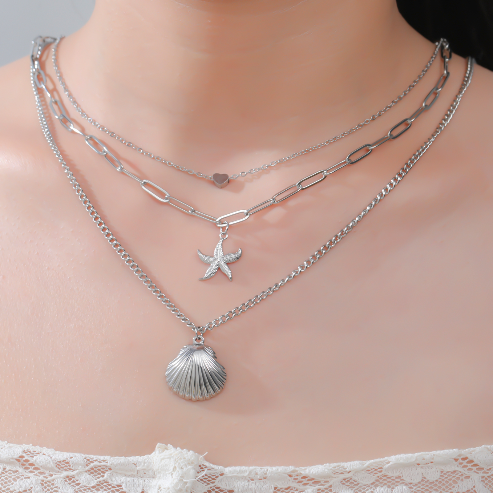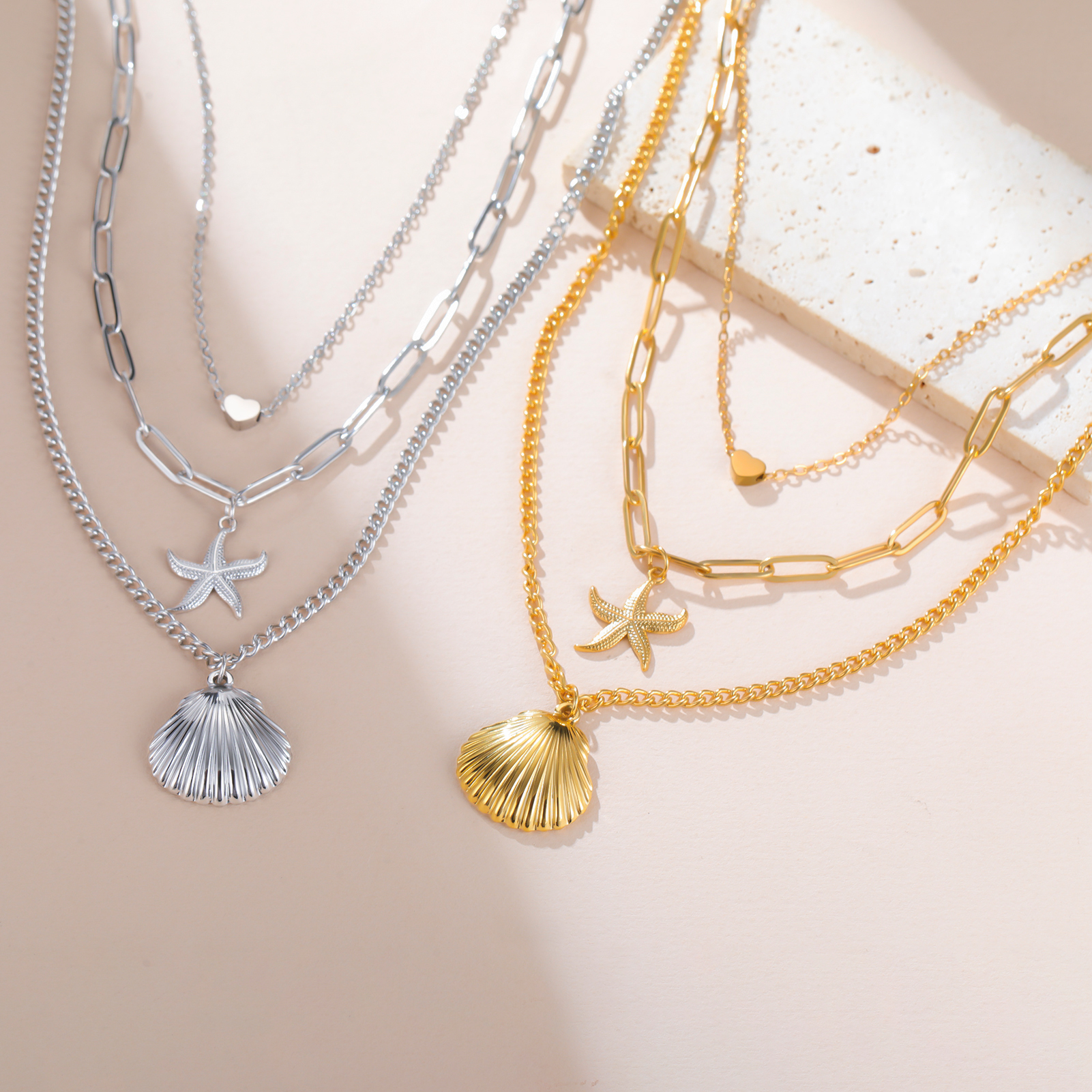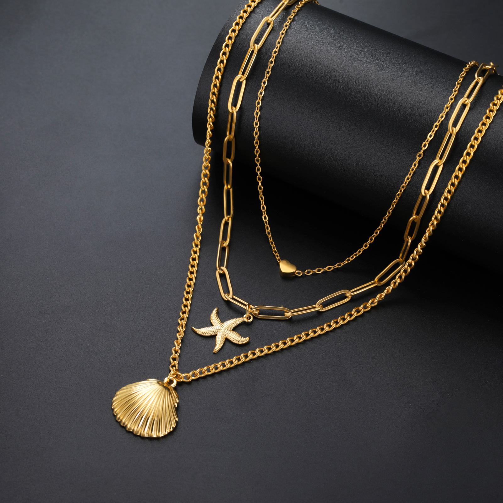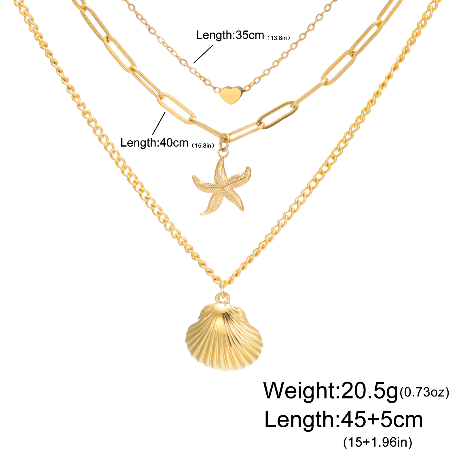 Cazador Starfish Shell Heart Pendants Women’s Necklaces 2025 Jewelry Stainless Steel Multi-layers Necklaces Bohemian Gifts 2025