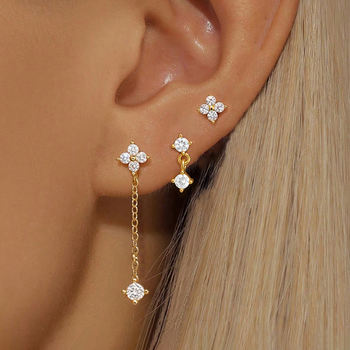 3PCS Chain Tassel Zircon Piercing Earrings Set For Women Gold Plated Geometric Stainless Steel Ear Stud Earrings Luxury Jewelry