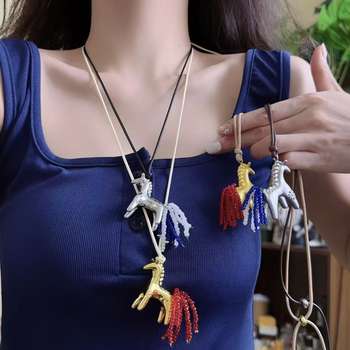 LATS Fashion Colorful Horse Pendant Long Necklace for Women Adjustable Sweater Chain Necklaces Jewelry Gifts Accessories