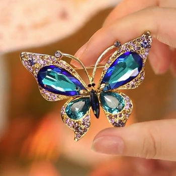 Vintage Rhinestone Butterfly Lapel Pins for Women Insect Brooches Office Party BFF Jewelry Accessories Gifts