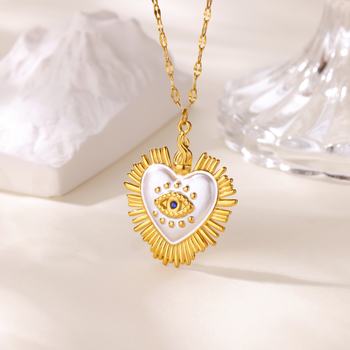 Zircon Evil Eye Heart Necklaces For Women Gold Color Stainless Steel Heart Necklace Lucky Aesthetic Turkish Waterproof Jewelry