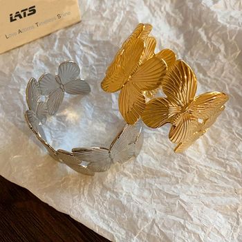 LATS Fashion New Metal Butterfly Cuff Bracelet for Women Girl Opening Geometric Adjustable Hand Jewelry Wholesale