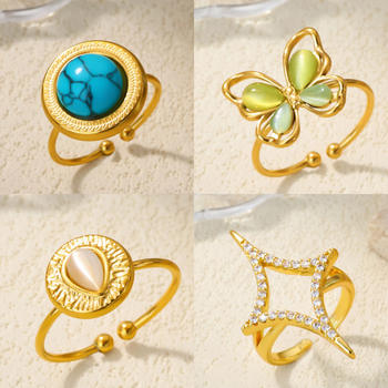 Popular Butterfly Rings For Women Gold Color Stainless Steel Geometric Opening Finger Ring Aesthetic Wedding Christmas Jewelry