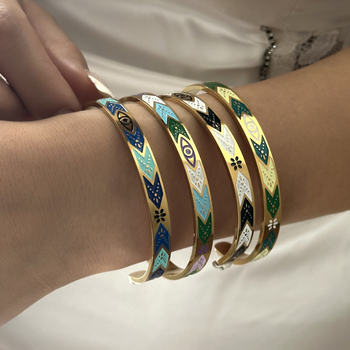 Stainless Steel Enamel Dripping Oil Open Bracelet For Women Lucky Evil Eye Geometric Bangle Daily Party Waterproof Jewelry Gift