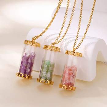 Stainless Steel Wishing Bottle Pendent Necklaces for Women Link Chain Charm Trendy Necklaces Waterproof Lucky Symbol Jewelry