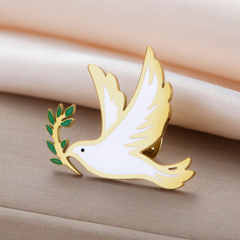 Cazador Stainless Steel Dove of Peace Pigeon Bird Lapel Pins Brooch for Women Men Olive Branch Badges on Backpack Jewelry Gift
