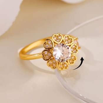 Luxury Fidget Spinner Knuckle Rings For Women Anti Anxiety Shiny Crystal Flower Anti Stress Rotating Ring Jewelry Accessories