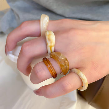 LATS 5pcs/set Colorful Resin Acrylic Irregular Rings for Women Girls Travel Aesthetic Jewelry Knuckle Finger Ring Accessories
