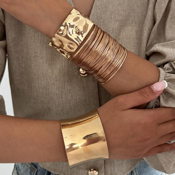 DIEZI One Set Punk Hip Hop Cuff Bangles Bracelets Vintage Gold Color Round Hollow Out Geometric Bangles For Women Men Jewelry