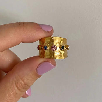 Fashion Zircon Geometric Rings For Women Stainless Steel Gold Color Open Ring Luxury Wedding Party Aesthetic Jewerly Gift Femme