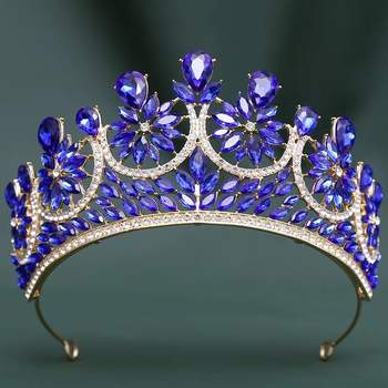 DIEZI Sweet Elegant Luxury Blue Red Green Opal Crystal Tiara For Women Girls Wedding Party Bridal Bride Crown Hair Accessories