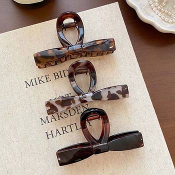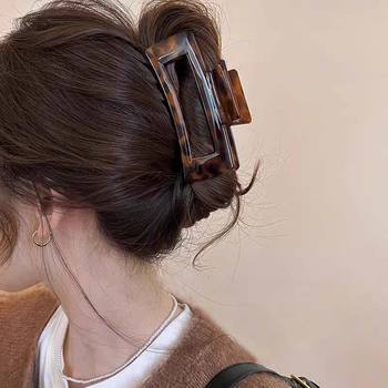 Korean Leopard Print Hollow Square Hair Claws for Women Vintage Acrylic Large Size Shark Clamp Barrette Hair Accessories
