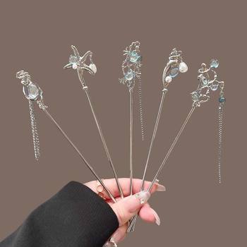 New Chinese Style Metal Starfish Conch Tassel Hair Stick For Women Fashion Moonstone Hanfu Hair Stick Hairpin Hair Accessories