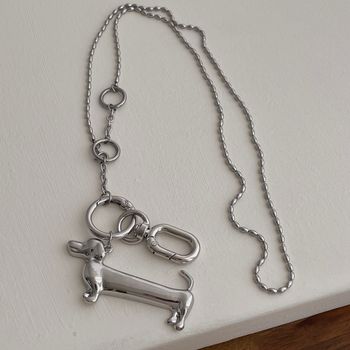 LATS Smooth Surface Dachshund Cartoon Dog Pendant Necklaces for Women Silver Plated Long Beads Sweater Chain Unique Jewelry