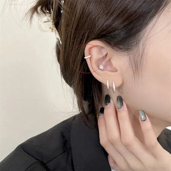 New Fashion Fine Zircon 925 Sterling Silver C Type Clip Earrings Punk Rock Unisexual Rhinestone No Hole Ear Clip Earring Jewelry