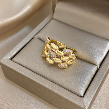 Greatera Hollowed-out Spliced Ring Copper Plated Gold Design Light Luxury Versatile Rhinestone Decoration Fashion Women Jewelry