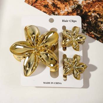 3Pcs/Set Fashion Metal Flower Hair Claw Clips for Women Girl Elegant Large Ponytail Cip Clamp Barrettes Beach Hair Accessories