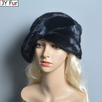 Fashion Natural Mink Fur Hats New Russian Girl Soft Knitting Real Fur Bucket Hats 2025 Woman Winter Solid Mink Caps With arrow