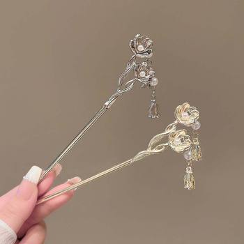 New Chinese Style Flower Tassel Hair Stick for Women Girls Elegant Metal Floral Hair Clip Bun Hair Ornament Hair Accessories