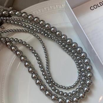 Simple Gray Pearl Choker Sweater Chain Necklace for Women’s Fashion Luxury Neckchain Korean Jewelry