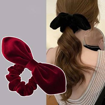 Vintage Black Velvet Bow Scrunchies for Women Girl Elegant High Ponytail Elastic Hair Ties Rubber Band Headwear Hair Accessories