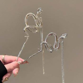 Vintage Metal Wrapped Snake Shaped Tassel Hair Sticks For Women Exquisite Shiny Crystal Ponytail Clip Hair Stick Hair Ornament
