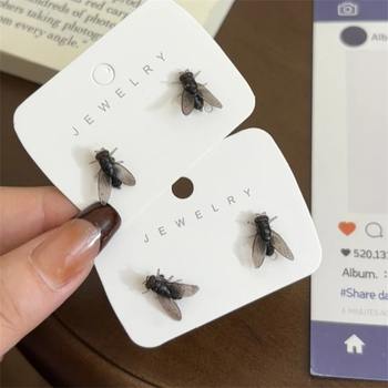 Funny Prank Flies Stud Earrings For Women Realistic Simulation Insect Small Fly Earrings Halloween Party Abstract Jewelry Gifts