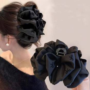 Fashion Black Bow Hair Claw Clips for Women Elegant Fabric Large Double Sided Shark Clip Hairpin Barrettes Hair Accessories